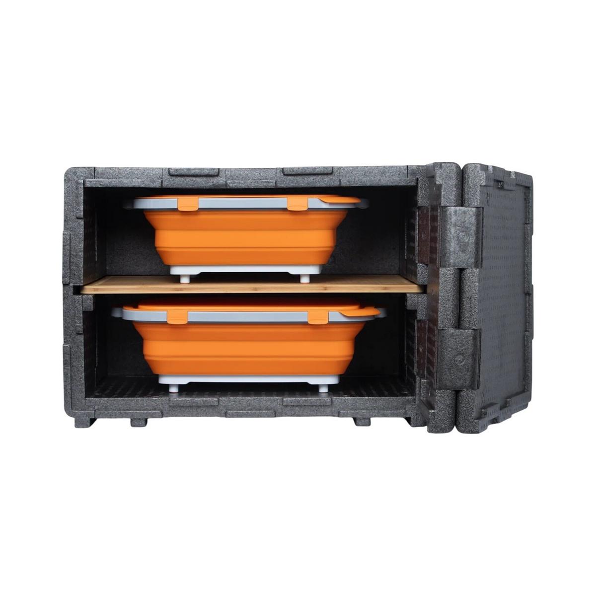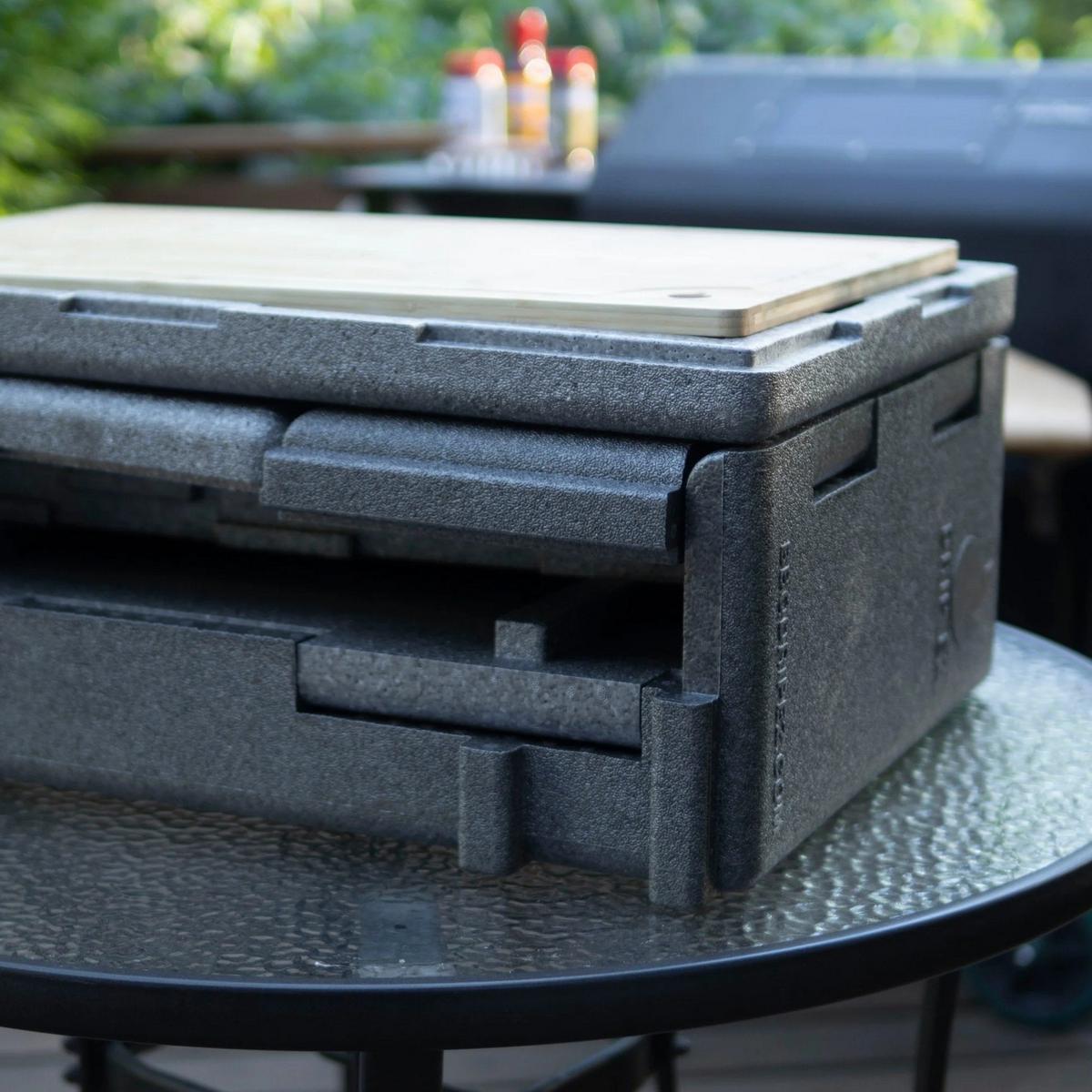 The Rest EZ® ‘Que Crib is the insulated resting station that replaces coolers and towels for good. With locking latches, an expandable design, and a heat-trapping interior, it keeps your brisket, pork, or ribs at the perfect temperature while locking in juices for next-level tenderness. Spacious enough for two XL Prep Tubs and paired with a bamboo cutting board for carving and serving, the ‘Que Crib is cleaner, smarter, and more reliable - built for pitmasters who demand better results every cook.