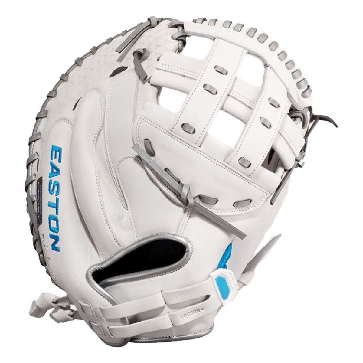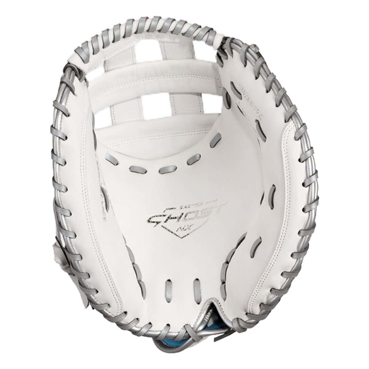 Easton's Ghost series is a symbol of elite fastpitch play. The Ghost NX 34-inch Catcher's Mitt fits right in. These gloves were crafted in gameday-specific patterns designed for smaller hands and perfectly suited to the fastpitch game. On the outside, the Game Ready Diamond Pro Steer leather and Flex Notch closure system make this glove super soft and easy to handle right away. The Quantum Closure System on the glove back ensures a perfect fit for every player, and the interior Ax Suede microfiber lining creates unmatched comfort and durability. Also, the striking white-and-blue colorway and professional-grade silver metallic rawhide lace are sure to turn heads. Hit the field with the Ghost NX 34-inch Catcher's Mitt and master the softball diamond. Get yours today!