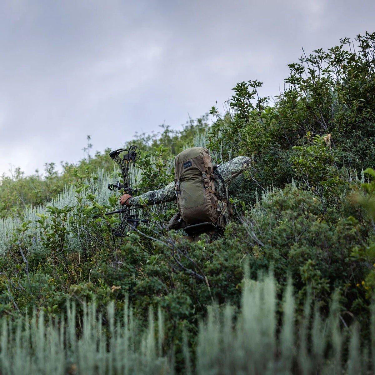 External features include extended depth stretch pockets to retain drink bottles, spotting scopes, tripods, etc. The center front panel utilizes the same 140D two-way stretch material to create a zippered pocket for items requiring quick access. Camouflage options use 450D Aramid reinforced ripstop while solid colourways have 500D Nylon ripstop construction. Removable Duraflex HD 25mm buckles allow you to expand the pack from the frame and create a channel to carry meat bags or heavy loads close to body and center of gravity.