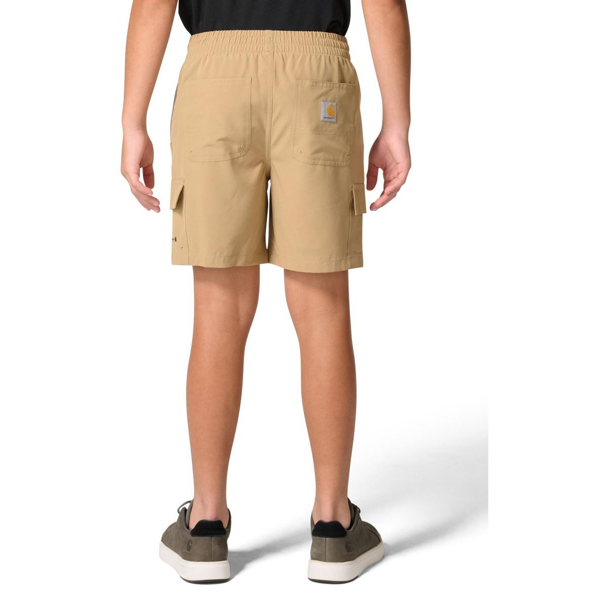 {"reviews":[],"offset":0,"limit":10,"total":0}"Full Description:\nRiding bikes or climbing trees, it's all in a day's work. These boys' shorts are up for the adventure, offering the rugged durability that Carhartt is known for. They're made from ripstop fabric that's both stretchy and strong.\n\nFeatures:\n\u003cul>\n\u003cli>Regular fit strikes a comfortable balance between loose and snug\u003c/li>\n\u003cli>Lightweight, 4.4-ounce, 92% polyester/8% elastane ripstop\u003c/li>\n\u003cli>Rugged Flex™: Built to stretch and flex with you as you move\u003c/li>\n\u003cli>Drawcord on elastic waistband for adjustable fit\u003c/li>\n\u003cli>Mesh-lined front pockets\u003c/li>\n\u003cli>Back dungaree pockets\u003c/li>\n\u003cli>Side cargo pockets for extra storage\u003c/li>\n\u003cli>Machine Washable\u003c/li>\n\u003c/ul>\n\n"