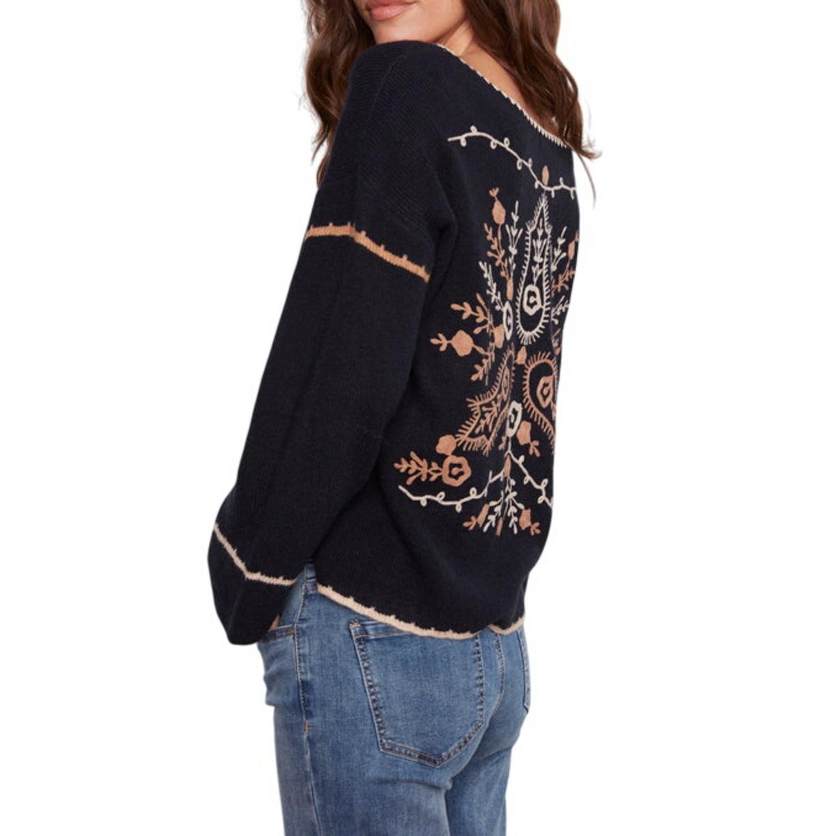 Women's Charlie B Embroidered Ribbed Notch Neck Pullover Sweater