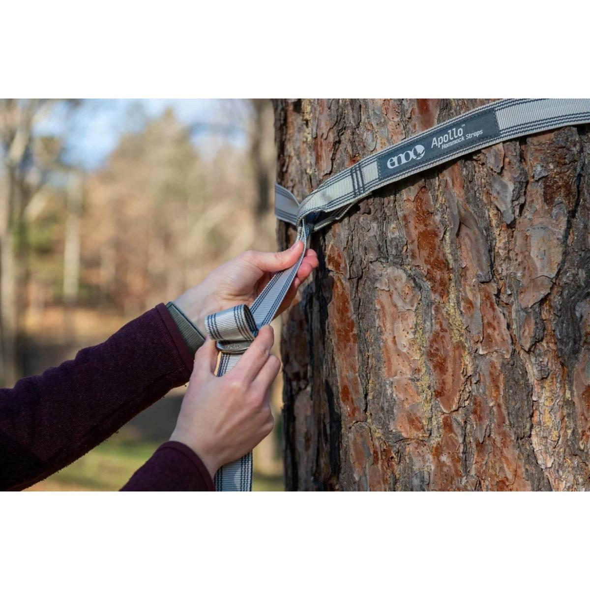 {"reviews":[],"offset":0,"limit":10,"total":0}"Full Description:\nAiring an all-new infinite adjustment system, the Apollo Hammock Straps cater to hammockers looking for a weather-proof, and tree-friendly solution that pairs perfectly with ENO SuperNest Hammocks and other outdoor hammocks.\n\nFeatures:\n\u003cul>\n\u003cli>Built with outdoor-grade materials for long lasting strength and durability\u003c/li>\n\u003cli>Ultra-wide webbing provides tree-friendly protection\u003c/li>\n\u003cli>Extended 10' straps easily span between a wide range of trees or anchor points\u003c/li>\n\u003cli>No-Knots-Needed setup with freely adjustable design to fine-tune your perfect hang\u003c/li>\n\u003c/ul>\n\nSpecifications:\n\u003cul>\n\u003cli>Capacity: 400 lbs / 181 kg\u003c/li>\n\u003cli>Material: 1000D Polyfilament Webbing, Stainless Steel Hardware\u003c/li>\n\u003cli>Dimensions: 10' x 1.5" / 3 m x 3.8 cm\u003c/li>\n\u003cli>Packed Dimensions: 5.75" x 3.5" x 2.5" / 14.5 x 9 x 6.5 cm\u003c/li>\n\u003cli>Weight: 19 oz / 538 g\u003c/li>\n\u003c/ul>\n"