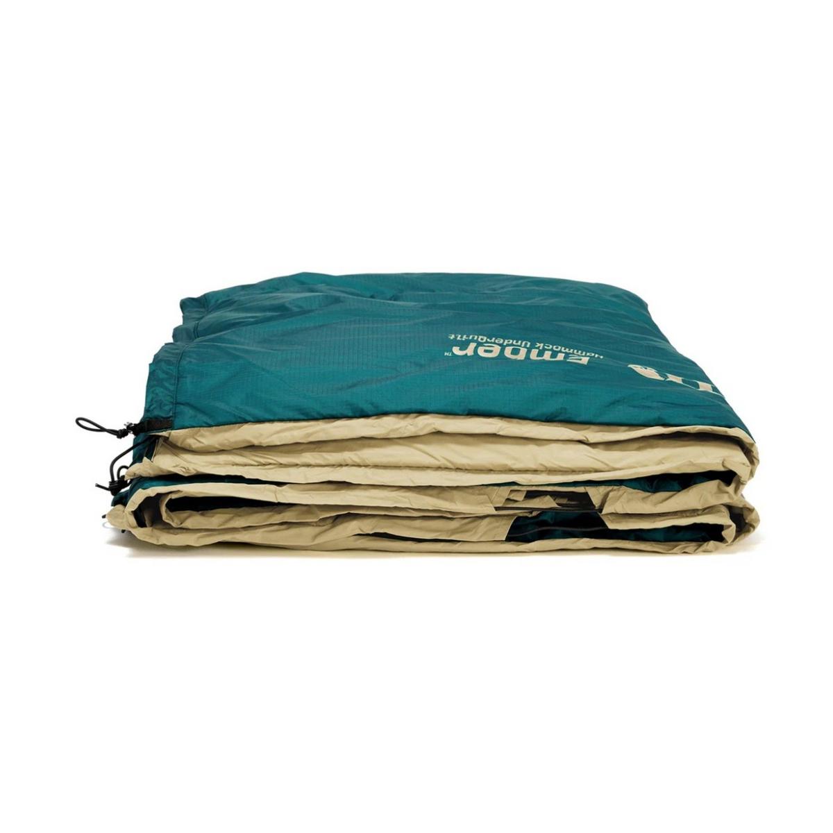 {"reviews":[],"offset":0,"limit":10,"total":0}"Full Description:\nKeeping you comfortable on brisk nights, the Ember UnderQuilt is built with two layers of synthetic insulation providing warmth during your hammock adventures.\n\nFeatures:\n\u003cul>\n\u003cli>Fully adjustable suspension quickly attaches to most ENO hammocks and adapts to any sleep position\u003c/li>\n\u003cli>Dual-layer offset-quilted construction eliminates cold spots & ensures maximum loft\u003c/li>\n\u003cli>Durable water repellent finish & specialized coating provide ultimate wind & weather resistance\u003c/li>\n\u003cli>Comfort zone temperature range: 40°- 60° F / 4° - 15° C\u003c/li>\n\u003c/ul>\n\nSpecifications:\n\u003cul>\n\u003cli>Material: Insulation: 100% Recycled Polyester (160g)\u003c/li>\n\u003cli>Shell: 40D Ripstop Nylon\u003c/li>\n\u003cli>Lining: 30D Nylon\u003c/li>\n\u003cli>Dimensions: 6'10" x 4' / 2.1 x 1.2 m\u003c/li>\n\u003cli>Packed Dimensions: 12" x 7" x 7" / 30.5 x 18 x 18 cm\u003c/li>\n\u003cli>Packed Volume: 9.6 L\u003c/li>\n\u003cli>Weight: 27 oz / 754 g\u003c/li>\n\u003c/ul>\n"