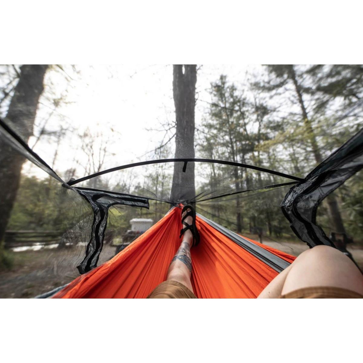 The Guardian DX Bug Net, designed with our new SkyWeave™ Lite mesh, is your luxurious solution for a night of bug-free hammock camping. Dual doors and signature ENO zipper pulls allow for ease of entry and increased ventilation. The integrated DAC Featherlite spreader bar, and our innovative ridgeline construction, help to optimize the interior volume and reduce your contact with the mesh, keeping you safe from disease carrying insects.