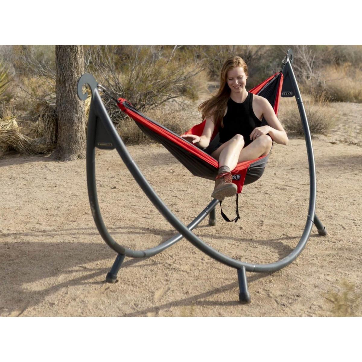 {"reviews":[],"offset":0,"limit":10,"total":0}"Full Description:\nFrom poolside to lakeside, the sculptural SoloPod Hammock Stand helps you relax season after season with its time-tested materials and convenient hammock attachment points.\n\nFeatures:\n\u003cul>\n\u003cli>Powder coated steel construction for all-weather durability\u003c/li>\n\u003cli>Quick-release construction will have you relaxing securely in seconds\u003c/li>\n\u003cli>Durable plastic feet protect stand and are safe for use on all surfaces\u003c/li>\n\u003cli>Stainless steel carabiners included\u003c/li>\n\u003c/ul>\n\nSpecifications:\n\u003cul>\n\u003cli>Capacity: 500 lbs / 181 kg\u003c/li>\n\u003cli>Material: Powder Coated Steel, Stainless Steel, Galvanized Hardware\u003c/li>\n\u003cli>Dimensions: 10'6" x 3'1" x 4'4" / 3.2 x .93 x 1.32 m\u003c/li>\n\u003cli>Packed Dimensions: 52.5" x 12.5" x 9" / 133.5 x 32 x 23 cm\u003c/li>\n\u003cli>Attachment Points: 9'6" x 4'1" / 2.9 x 1.25 m (LxH)\u003c/li>\n\u003cli>Weight: 60 lbs / 27.2 kg\u003c/li>\n\u003c/ul>\n"
