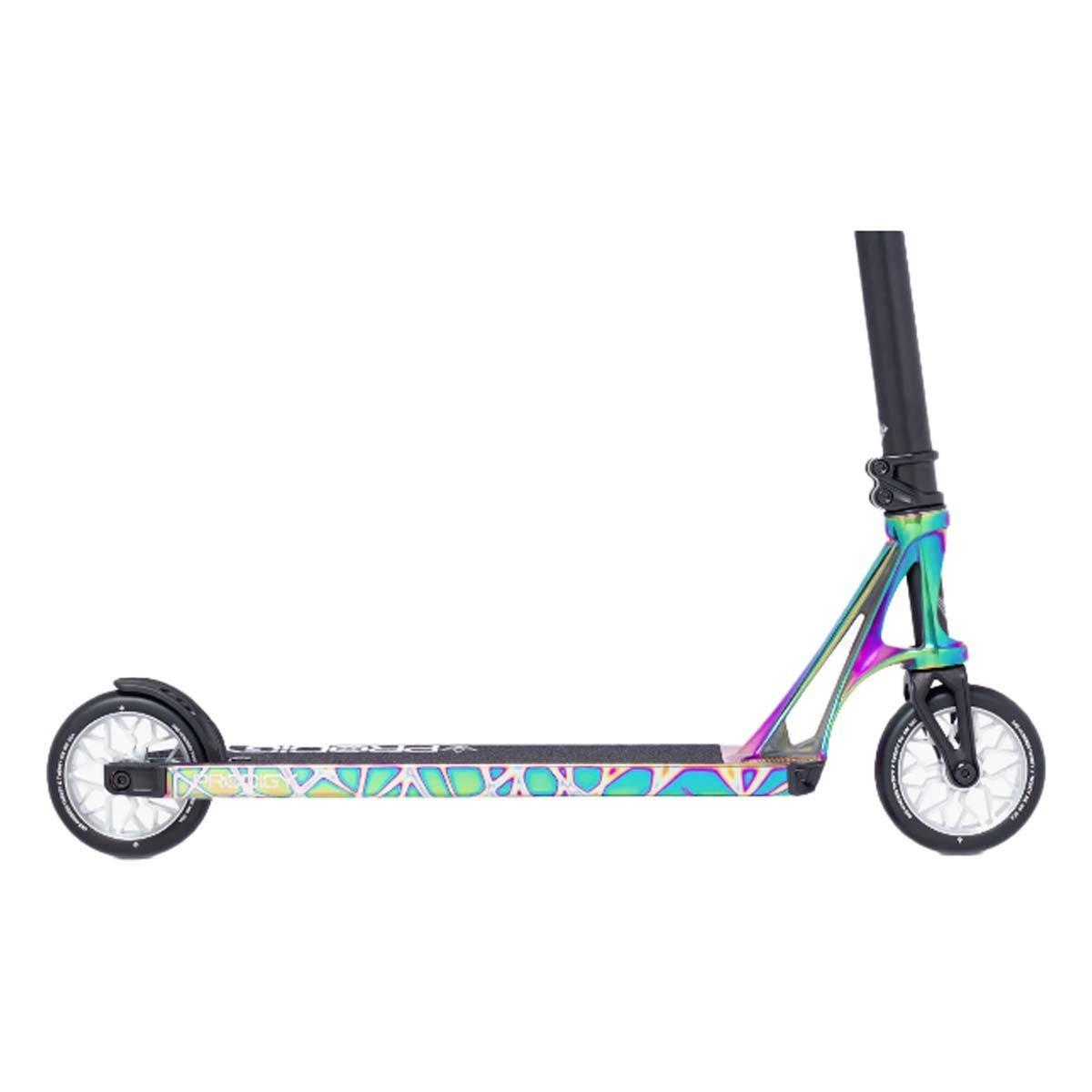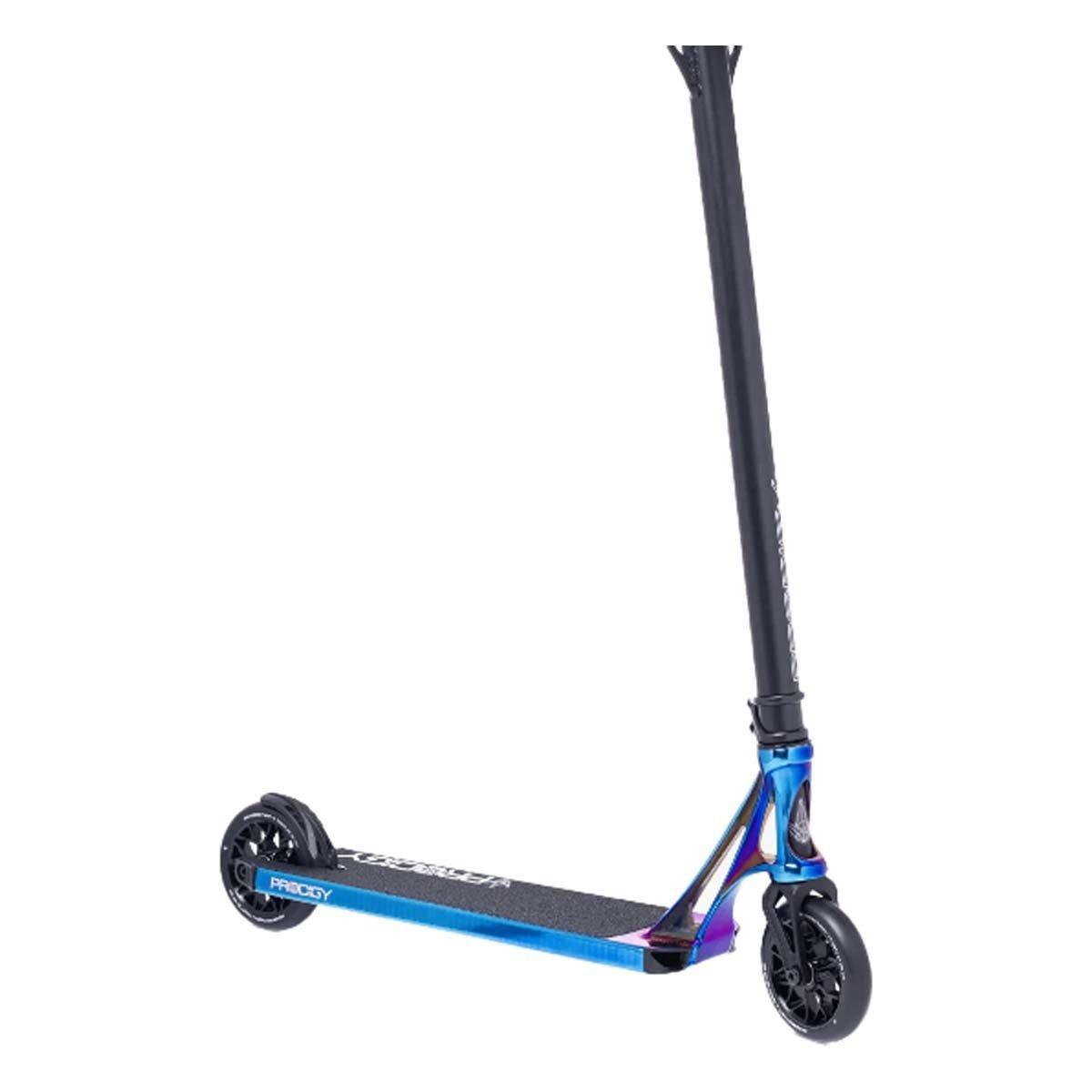 The Prodigy X is the perfect option for a wide range of riders. Its lightweight components will aid younger riders who need an agile scooter to learn, but will not hold back more advanced riders as their tricks get more difficult and are performed on larger obstacles. This version of the Prodigy X is designed for park-style riding; older/taller riders should look at the Street version of the Prodigy X as it comes with larger components.