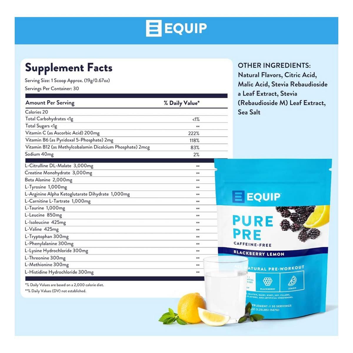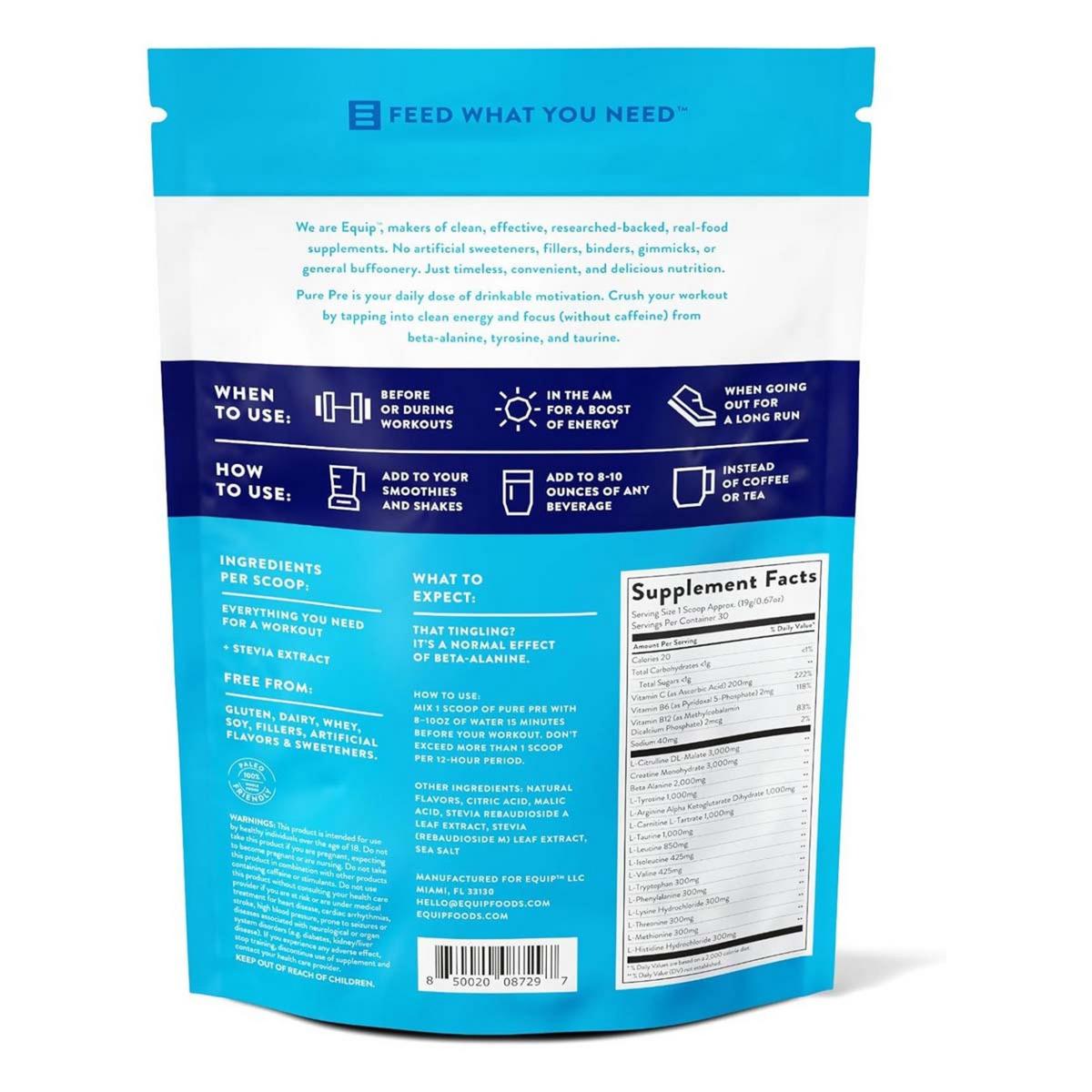 Equip Foods Pure Pre All Natural Pre-Workout Powder (Caffeine Free)