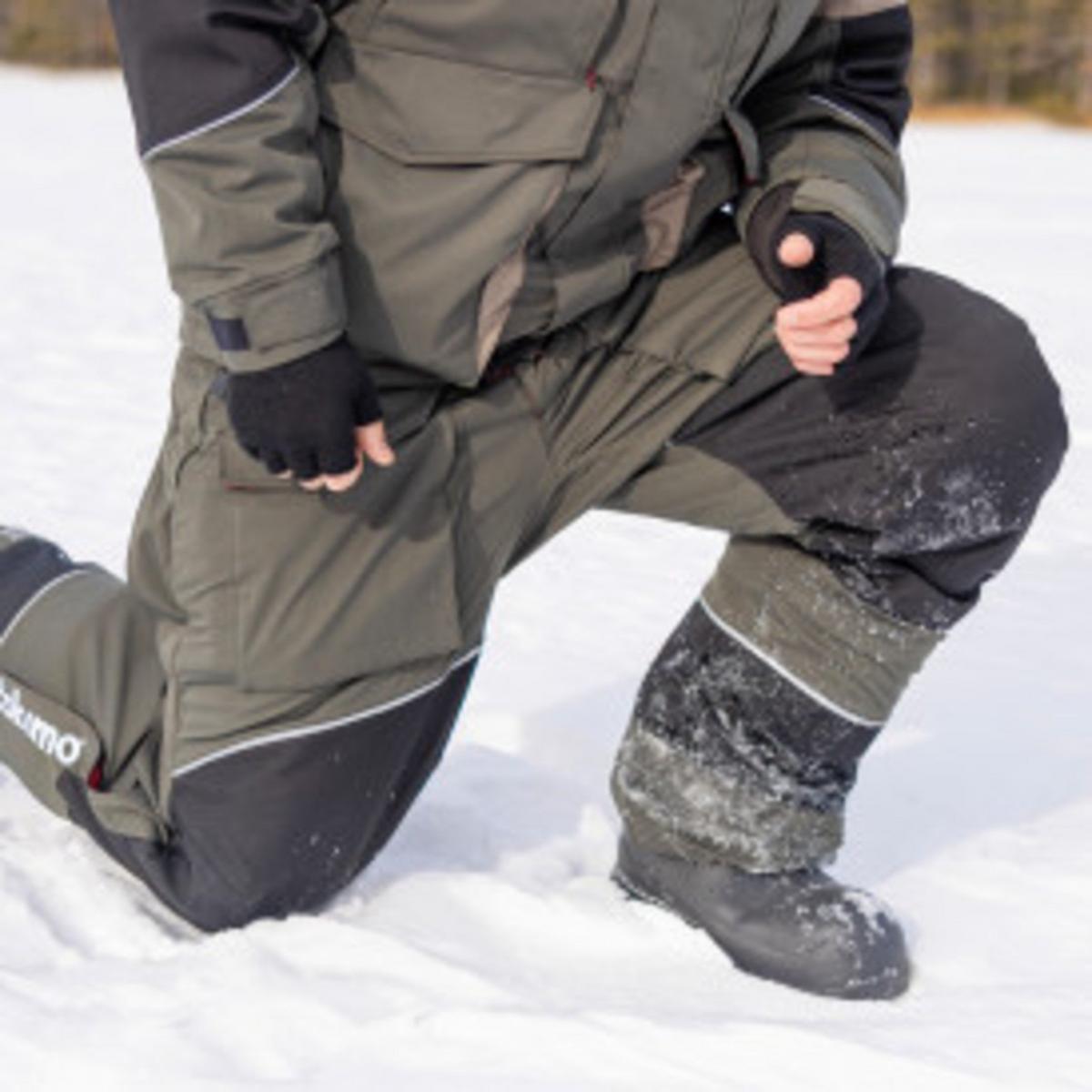 The Expedition™ Bibs will take you into the frigid lows of winter, and keep you warm every step of the way. From the moment you slip them on for the first time, to the bitter end of each season, don’t let your lower half know it’s winter out there. Forge onto early ice with peace of mind in your back pocket. Our unique Uplyft™ Breathable Flotation technology will keep you above water should the unthinkable happen, and dries out quickly once you’re out. This non-bulky, perforated flotation foam is both buoyant and breathable, with a mobility fit so it won’t make you feel like a marshmallow with it on. When the real cold fronts start to roll in, keep things warm and dry behind our high-performance DuraDry™ Mechanical Stretch fabric. This stretchy fabric enhances mobility and comfort, moving with you as you bend, kneel, and navigate from hole to hole. The DWR coated, 10k/10k Waterproof/Breathable fabric is high-end compared to standard ice fishing outerwear, with 80g of 3M™ Thinsulate™ insulation throughout the bibs. In practice, this means that wind can’t leak through anywhere on cold snowmobile rides, and water won’t penetrate it. Nobody has ever regretted being over-prepared in frigid winter conditions. Comfort in every situation is the bottom line here. To make sure the bibs fit over your boots and sit exactly where you want, each leg has five different length adjustment options. The lowest hem seams are shaped and reinforced, so you won’t be carrying around any extra bell-bottom ice buildup you didn’t sign up for. The foam knee pads create a noticeable cushion that moves with you from hole to hole, and we keep the pockets and storm flap simple—magnetic closures that you don’t have to spend extra time fiddling with. Hit the ice trusting the one item you’ll have on your body all day long, and make sure it’s this comfortable.