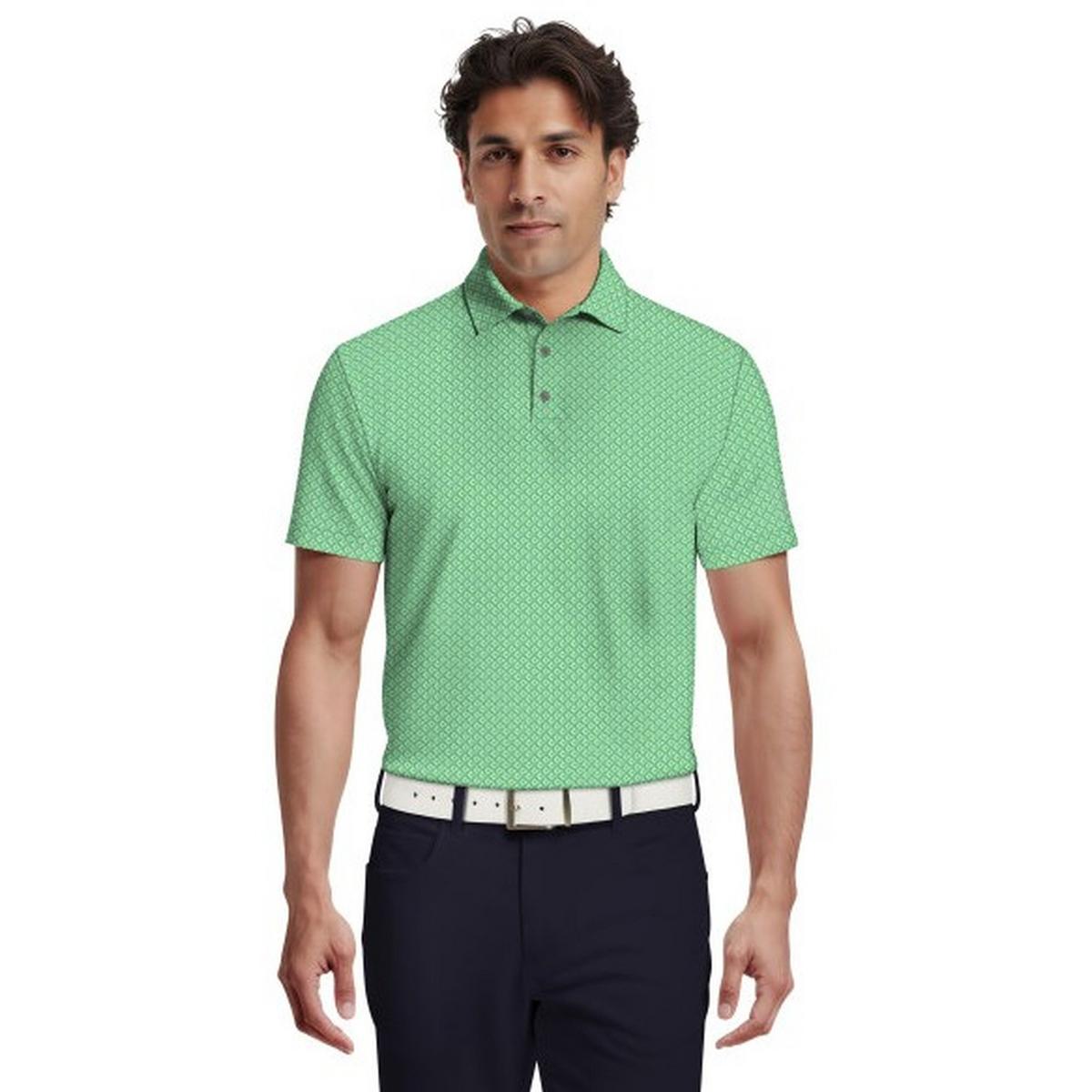 Swing into effortless style and modern comfort with this PGA TOUR Apparel men's golf polo. This versatile golf shirt features a cool geometric print that adds visual interest to your active attire. Crafted from soft interlock fabric, this men's golf top provides incredible comfort, perfect for long days on the green or casual outings. It also includes moisture-wicking technology to keep you wonderfully dry and sun protection for those bright days on the course. With stretch shoulder seams for unrestricted movement, you'll feel great playing in this men's golf polo. Plus, it's machine washable for quick and easy care, making it an excellent choice for your fun-loving lifestyle.