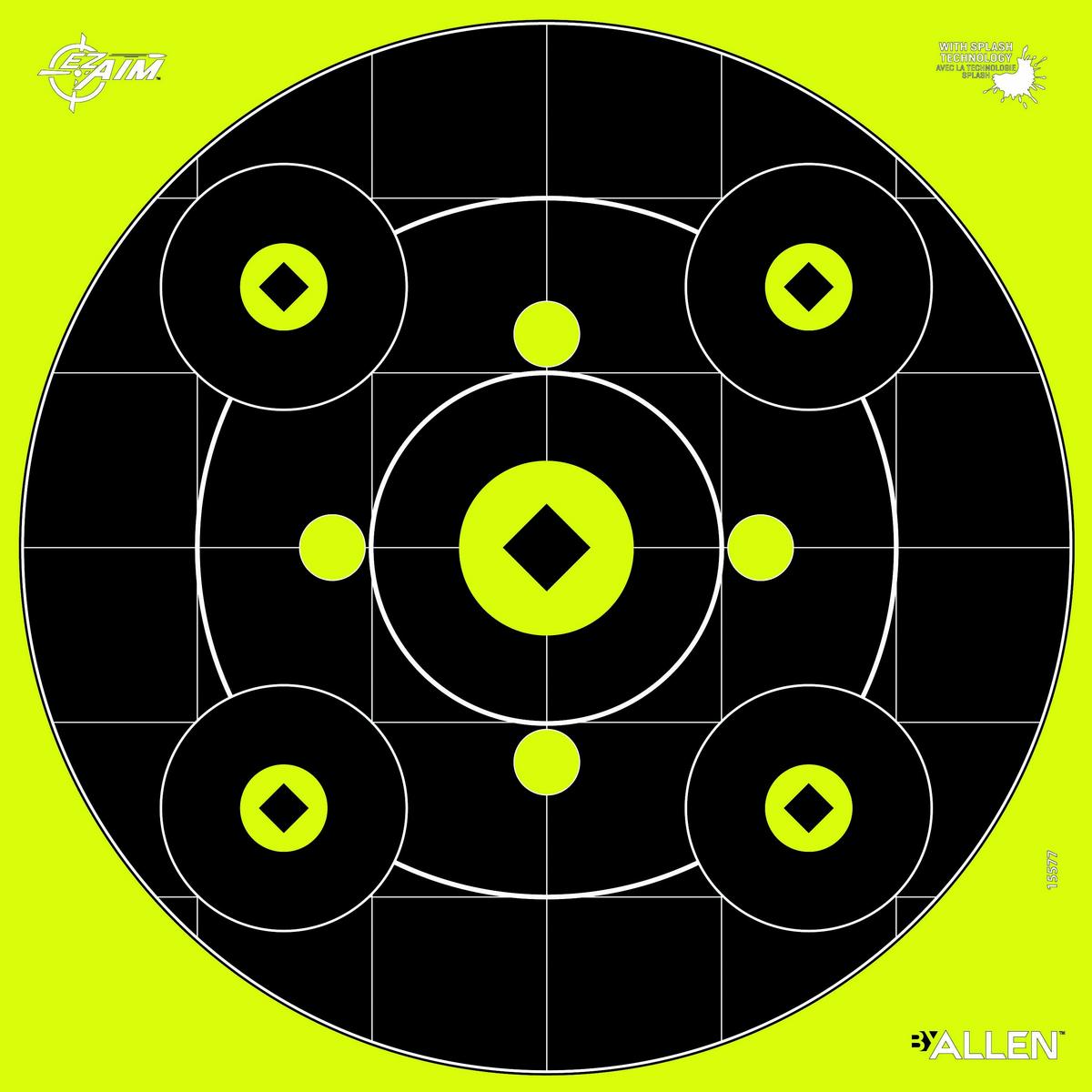 Crafting your skills at the range is necessary before hitting the field—but where to begin? EZ Aim® Target Shooting Systems will challenge any level of shooter with the most comprehensive options in the industry. No other mounting system delivers you the versatility and ease of use than EZ Aim®. Launched in 2019, we listen to what today’s shooters demand with an array of products designed to test what you can bring to the table. The only limit of target exploration is your creativity and imagination. Stay on target with EZ Aim®. The EZ Aim Splash target is designed to show the shooter the impact of the bullet by creating a bright white halo around the bullet hole. The target face features a center bullseye plus a gallery of 8 small aiming point evenly distributed around the target. A grid pattern made of 2 inch grids aids in scope and sight adjusting 12.5 x 12.5 target face. 12 pieces per pack.