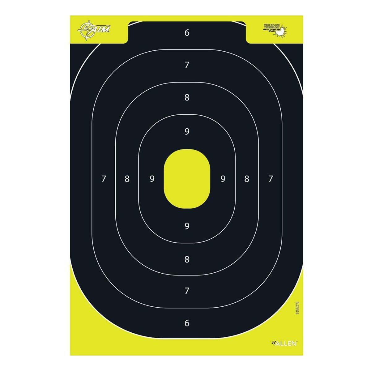 The EZ Aim® Splash Reactive Targets make sight in easier. The Silhouette target gives the shooter a proper center-of-mass image.. The Splash technology provides a bright halo around the bullet hole for instant recognition of the point of impact of each shot. The convenient bound format makes handling and storing targets easier. The halo color is bright white. Target dimensions 12.5 x 18.25. 30 targets per pack