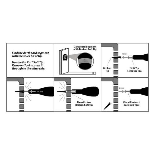 Don’t let a broken tip ruin your cherished dartboard. When a tip breaks inside a board it can be nearly impossible to remove, rendering that section useless. However the Fat Cat Tip Remover allows you to save your electronic dartboard and allow it to live another day. This easy to use tool is able to push the broken piece through the back of the boards and allowing you to extend the life of your board.
