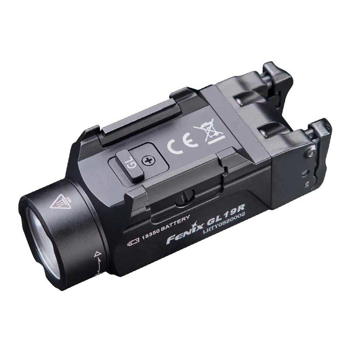 The Fenix GL19R Tac Light is a rechargeable weapon light that is capable of blasting up to 1200 lumens 689ft (210m). Simply tap either the left or right switch to activate the light—perfect for left- or right-handed shooters. Three available lighting modes include 2 brightness levels and an assailant disorienting strobe. This weapon light easily attaches to full size (and some compact) pistols with a Glock or Picatinny rail and includes a quick-lock mechanism so you can easily attach and detach the light from your weapon. USB Type-C rechargeable with a battery level indicator, impact resistant and IP68 rated dust and waterproof, the Fenix GL19R Weapon Light will be a welcome addition to your arsenal.