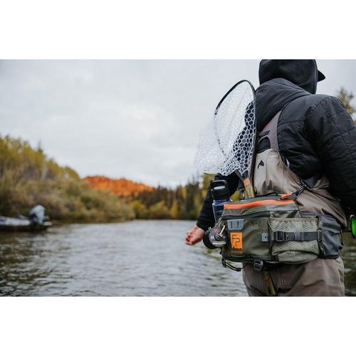 When the road less traveled leads you to untamed corners of the wilderness, it helps to bring gear that is just as rugged as the landscape you find yourself in. Enter the Stormshadow Lumbar Pack—meticulously designed to conquer the elements and thrive in the most challenging environments. Built with waterproof fabric and coated zippers, this pack is designed for anglers who demand top-tier performance and unbeatable durability. An integrated waterproof pocket featuring the TRU Zip zipper guards your valuables against submersion, allowing you to explore with confidence. The top flap of the pack features integrated magnets, holding it open for hassle-free access to your gear. Behind a coated YKK AquaGuard® water-resistant zipper, you'll find a large storage compartment featuring a removable divider, with 8 liters of storage space for all the fly boxes and accessories you'll need. Integrated water bottle holders, exterior accessory attachment points, a net slot, and hip belt stash pockets round out a platform that allows you to tackle whatever Mother Nature throws your way.
