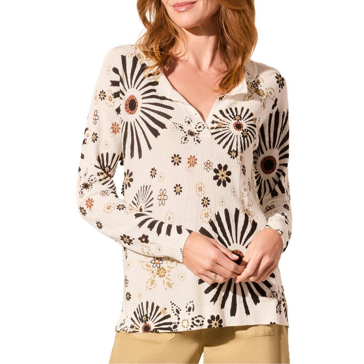 Embrace the perfect blend of comfort and style with our Women's Tribal Flowy Floral Notch Neck Pullover Sweater.
