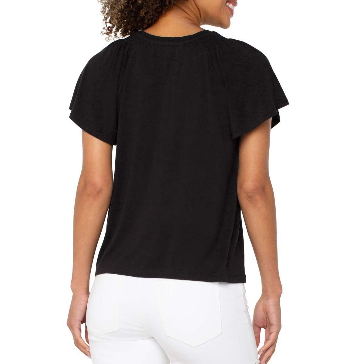 Add some fun and flirty style to your everyday essentials with our Short Flutter Sleeve knit top. Available in multiple colors