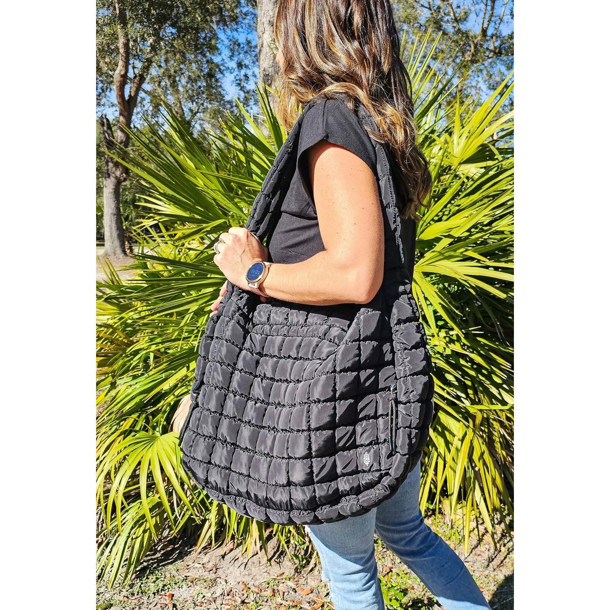 The Free People Movement Quilted Carryall Bag is great for hauling all your essentials to work or when out running errands. The quilted fabric design offers a trendy and stylish look that pairs well with a variety of different outfits. With the spacious interior compartment, you'll have plenty of room to store all your essentials, while the exterior pockets provide easy and convenient access to items you need on the go. Stylish and practical, the Free People Movement Quilted Carryall Bag is a must-have for any fashion-forward individual.