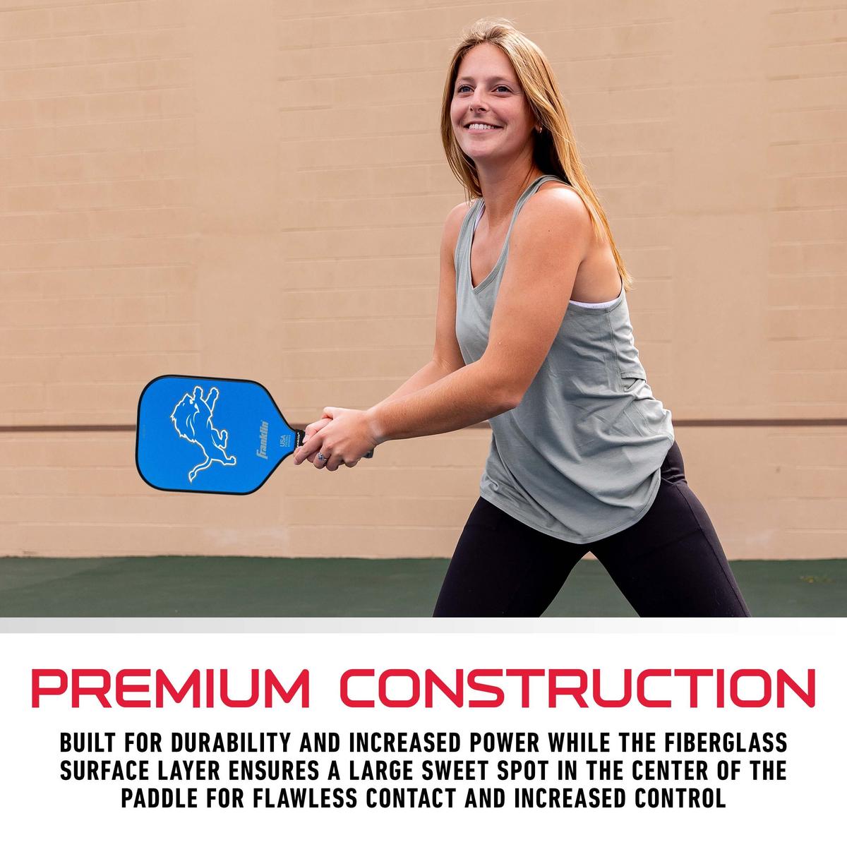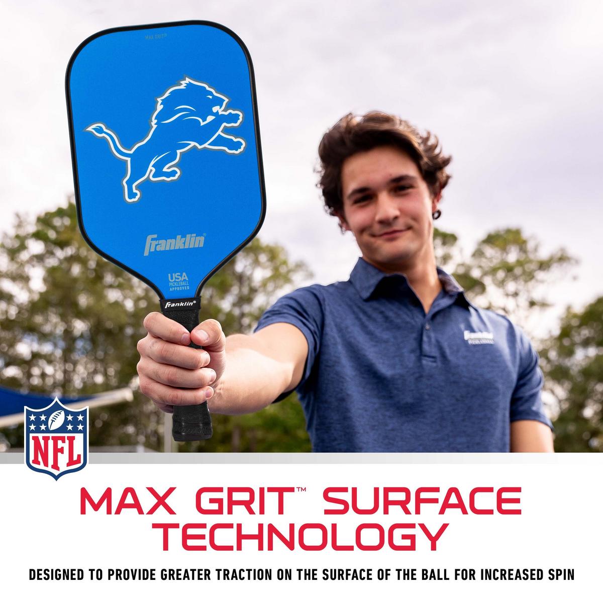 Franklin Sports' NFL Pickleball Paddles are the perfect way for fans of all NFL teams to hit the pickleball court in style while repping their favorite team! These premium quality pickleball paddles are designed with official NFL team logos and colors which makes them a must have piece of pickleball equipment for every football fan. Designed for premium performance, these pro-style pickleball paddles are constructed from top-notch components. The 13mm polypropylene core has a large sweet spot and is designed for long-lasting durability and powerful shot making. Plus the fiberglass surface layer is coated with our Max Grit grip technology to enhance the texture of the paddle head so players can add spin and control to their shots. These paddles have been approved by USA Pickleball (USAPA) for regulation and tournament play at the highest levels. So if you're a fan of the NFL and are looking to take your pickleball games to the next level, grab yourself one of Franklin Sports' NFL Team Pickleball Paddles and hit the court today!