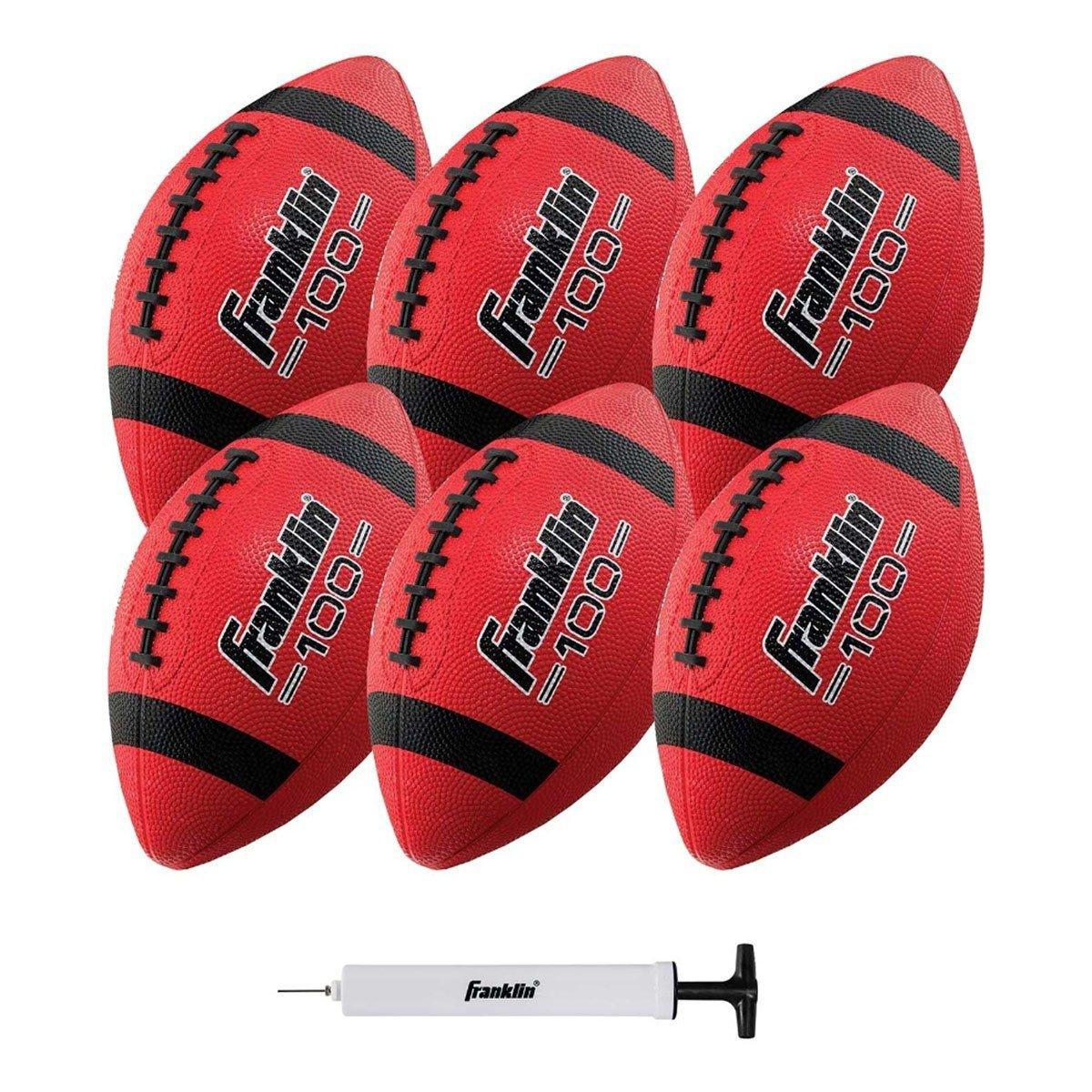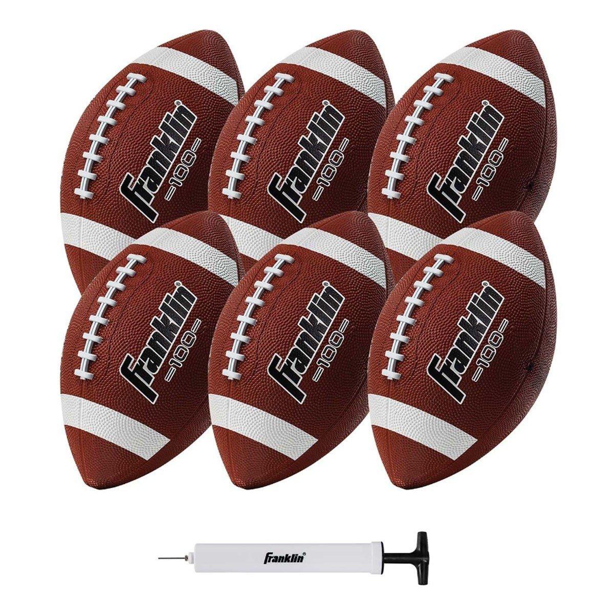Franklin Sports Grip-Rite 100 Deflated Rubber Junior Footballs with Pump - 6 Pack