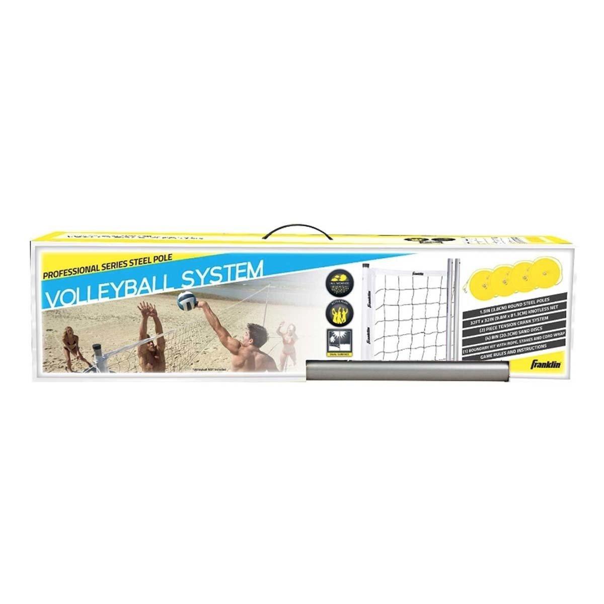The Franklin Expert Steel Volleyball Set are designed for superior stability throughout gameplay and durability in the elements. Using heavy gauge steel ground stakes heavy-duty steel poles and a molded tension bar adjustment for guy ropes this net is sure to withstand the most competitive volleyball games. Play in the sand at the cabin or in your backyard with Franklin's Volleyball Post and Net System. The set also includes a carrying bag for organized storage when not in use.
