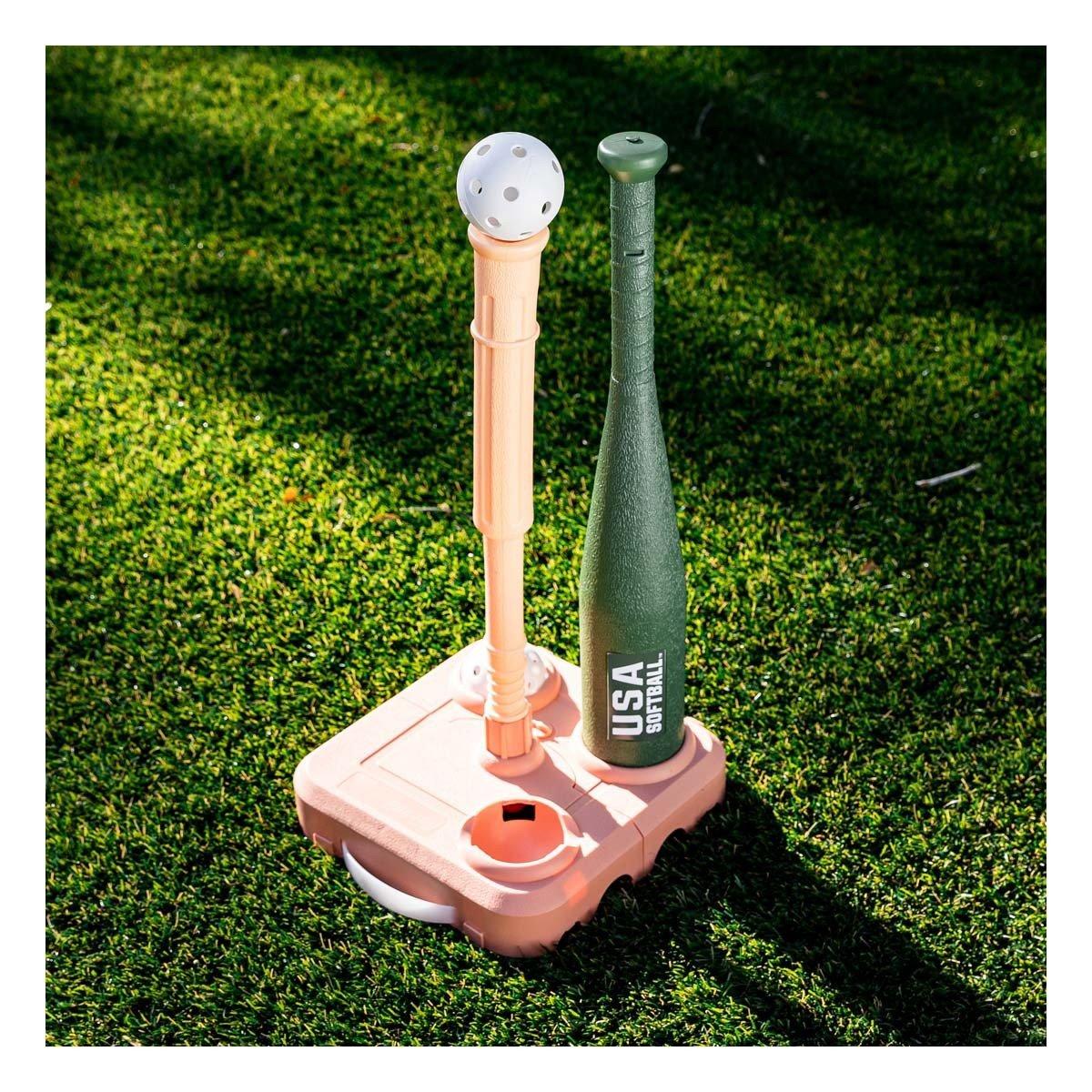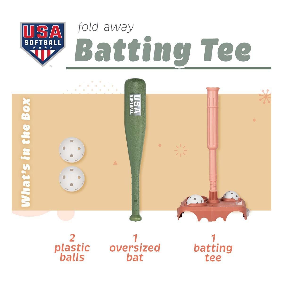 The Franklin Sports USA Softball Fold Away Softball Tee is a great tool in teaching young players the game of softball for the first time! Using a lightweight bat with an oversized barrel, players are encouraged to make contact with the ball, building the confidence for your little athletes! The innovative youth tee folds in half at the base and allows for all components to be stored inside. The built-in carry handle makes the batting tee extremely portable! The USA Softball Fold Away Batting Tee is recommended for children ages 3 and up. Play Ball!