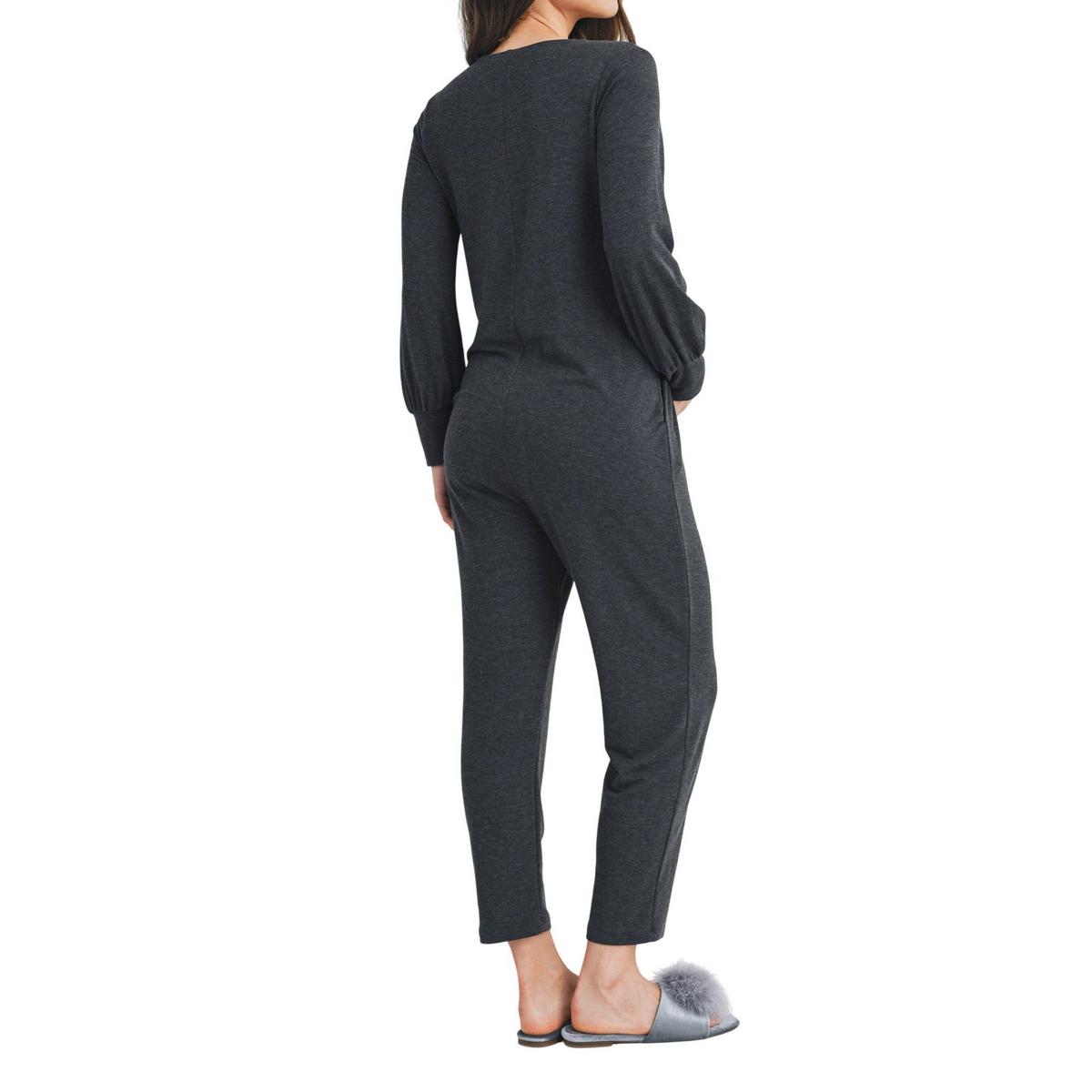 Women's Hello Miz French Terry Zip Front Nursing Friendly Long Sleeve Jumpsuit