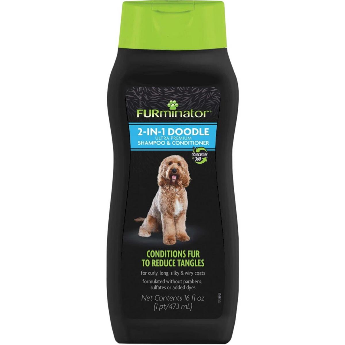 Need help avoiding the dreaded “shave down” at the groomer? Keep your doodle looking dandy and condition their fur to reduce tangles with FURminator® 2-in-1 Doodle Ultra Premium Shampoo & Conditioner!