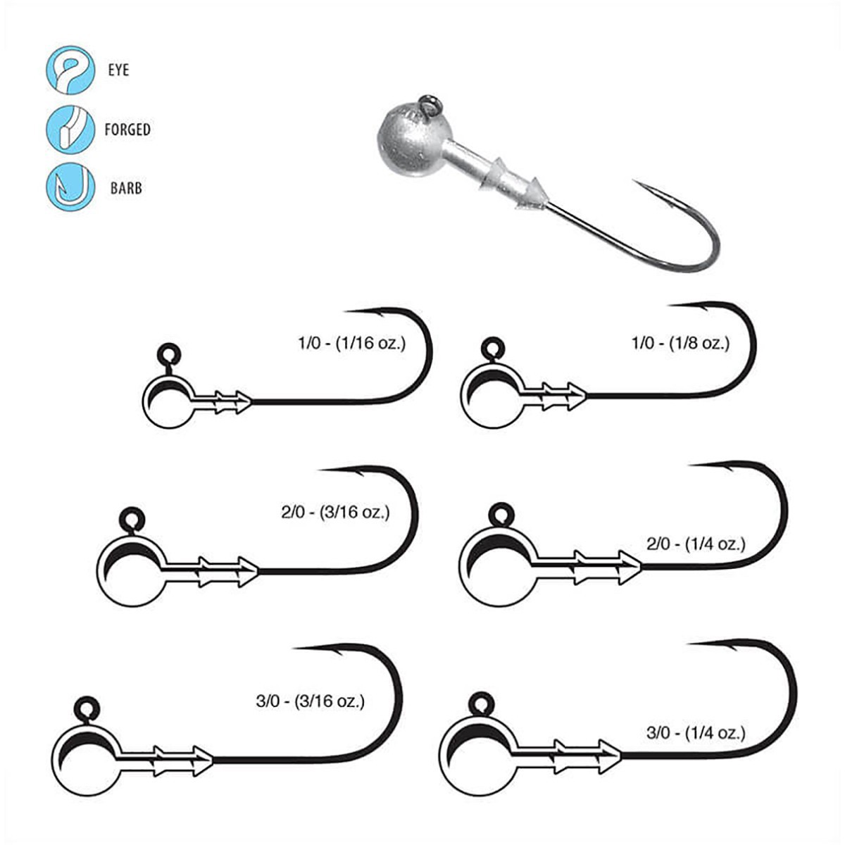 The standard round head design makes Gamakatsu’s Round 26 an extremely versatile jig head. The Round 26 features our 604 series jig hook whic is very popular with salmon and steelhead anglers and also has two keeper type rings behind the head to hold soft plastic baits firmly in place. 5 per pack