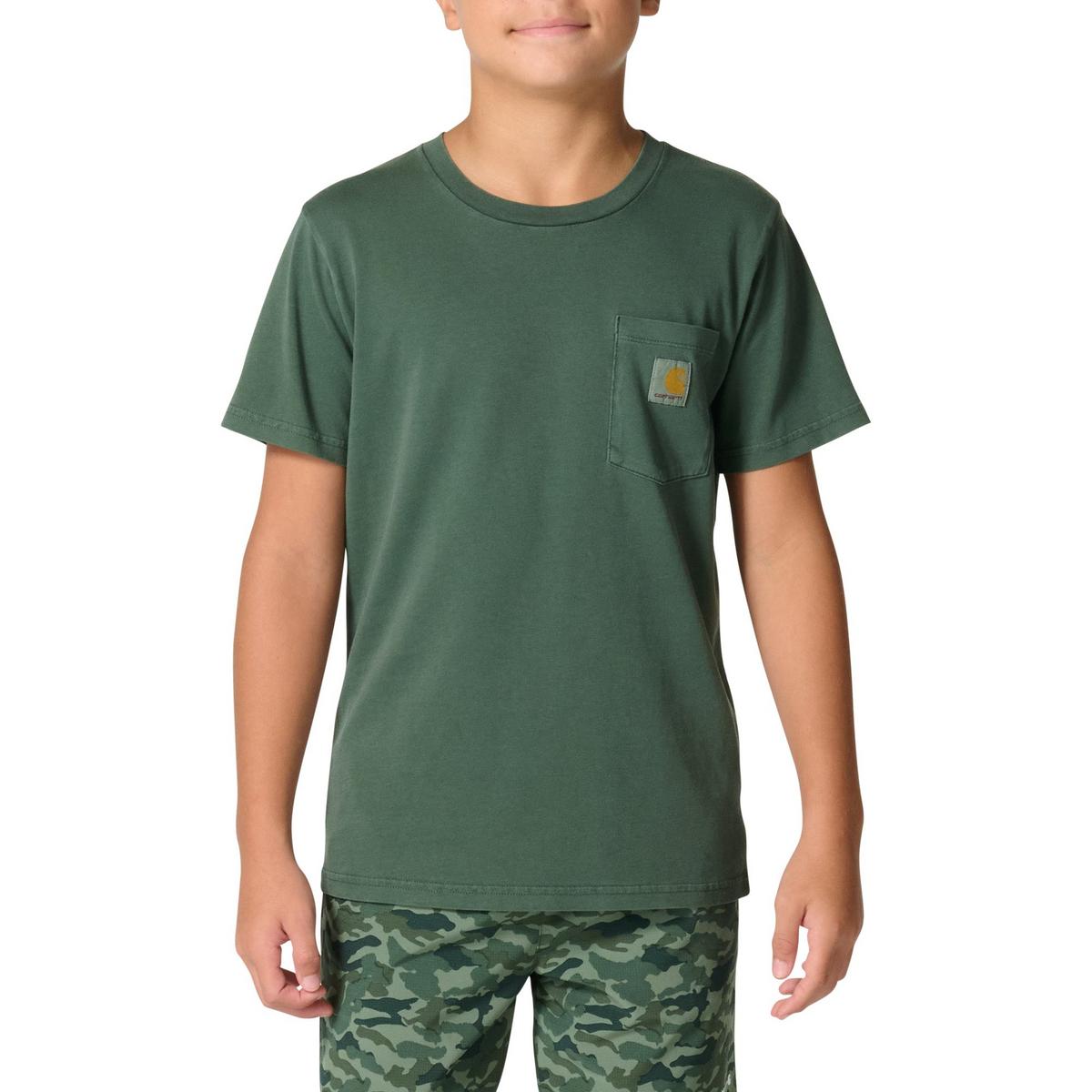 Fun-size Carhartt. This pocket t-shirt is every bit as strong as grown-up Carhartt tees. It's garment-dyed for a worn-in look from day one and made from soft all-cotton fabric that stands up to just about anything kids throw at it.