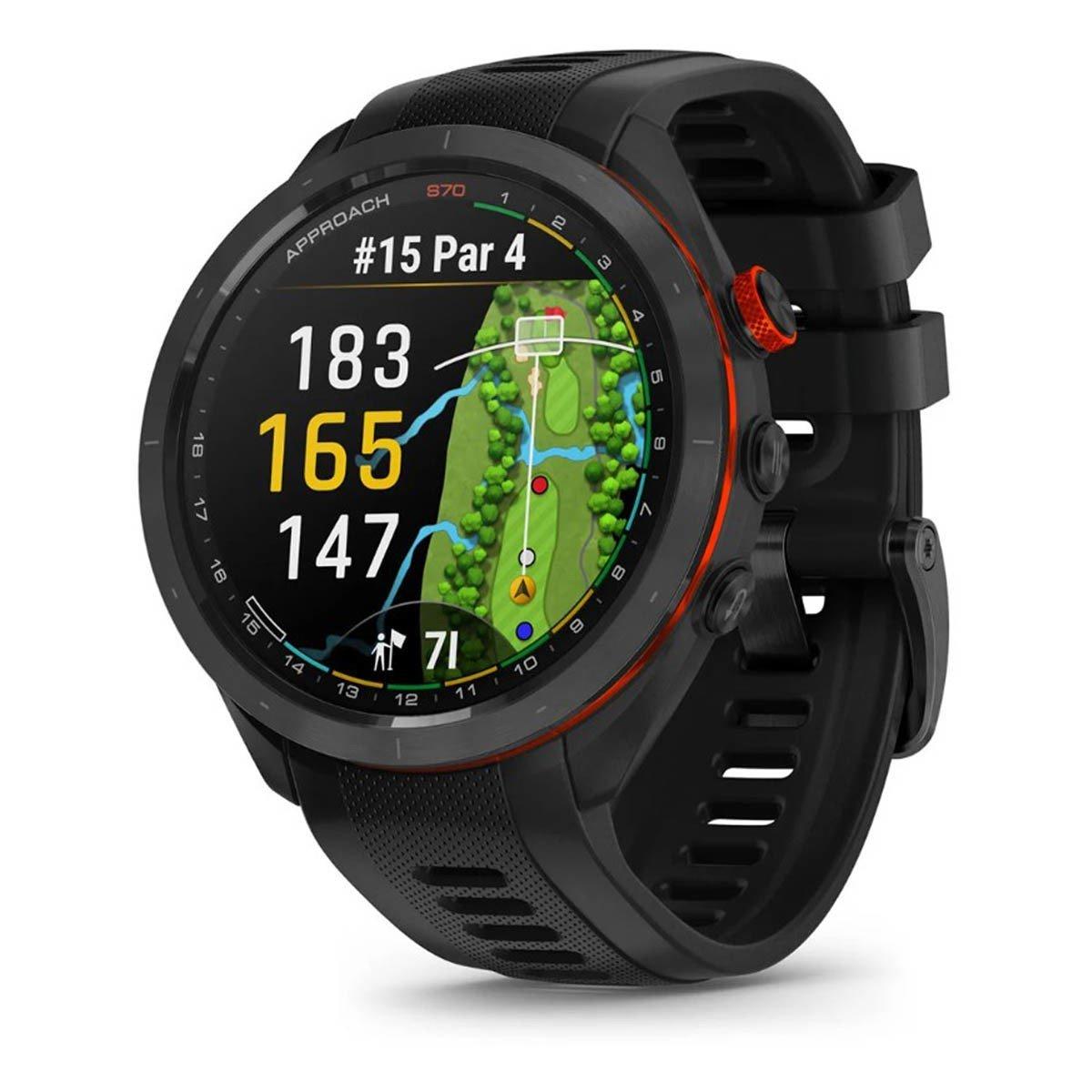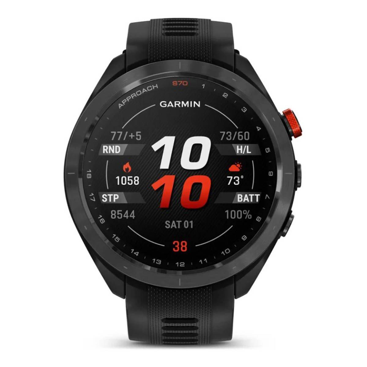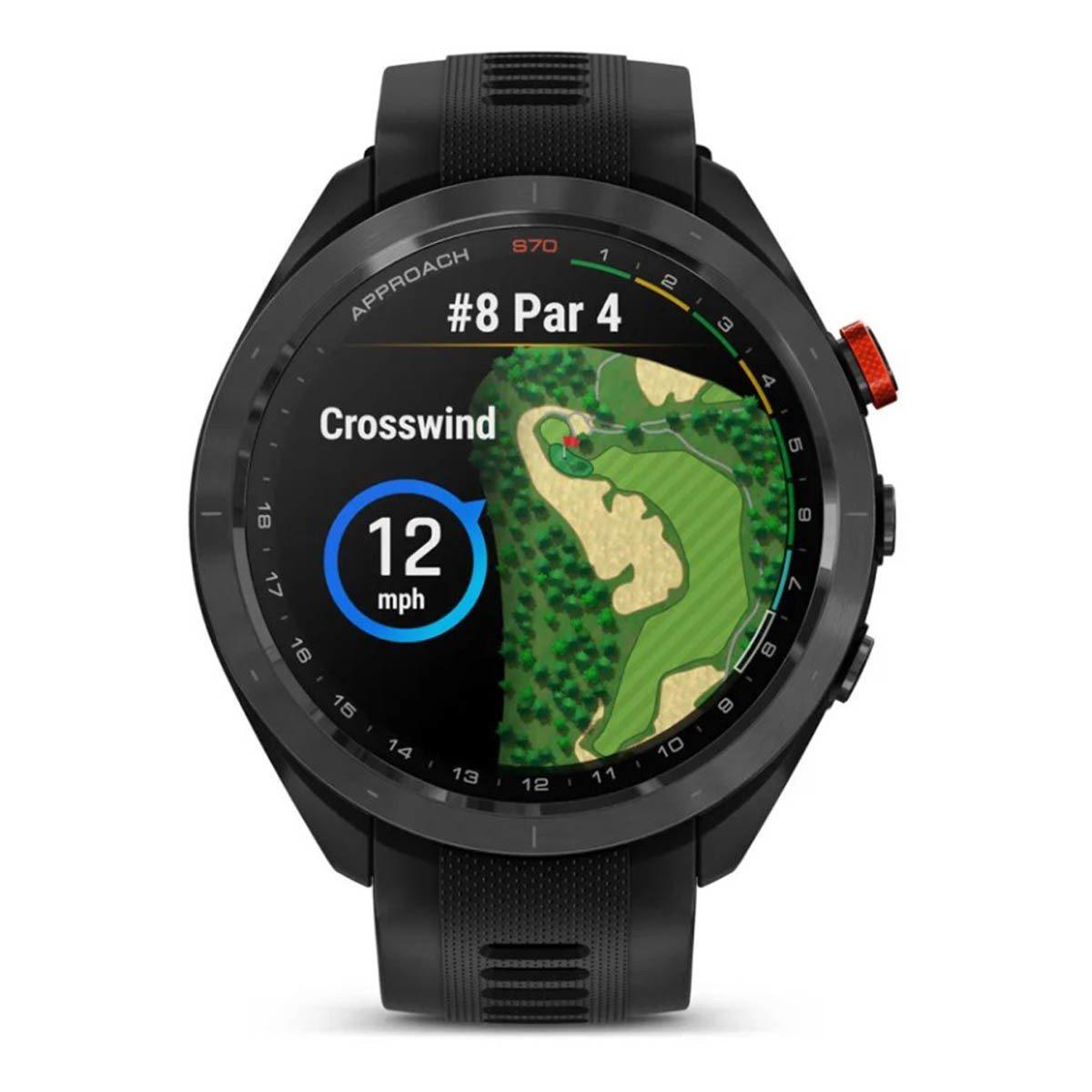 The Garmin Approach S70 GPS Golf Watch, available at SCHEELS, is a game-changer for golfers seeking to elevate their performance. With a 1.4" (47MM) & 1.2" (42MM) AMOLED touch display and 43,000 preloaded full-color CourseView maps from golf courses around the world, this watch provides improved visibility and precision. Enjoy an advanced virtual caddie who suggests clubs based on swing data, wind, elevation, and more, in addition to enhanced PlaysLike Distance providing yardage adjusted for all environmental conditions. The watch's health and fitness features, from heart rate monitoring to sleep score and advanced sleep monitoring, help you handle stress and optimize both fitness and rest times. With up to 16 days of battery life, water resistance, and music on your wrist, it is your ultimate companion, on and off the golf course. Shop the Garmin Approach S70 at SCHEELS and bring out the pro golfer in you.