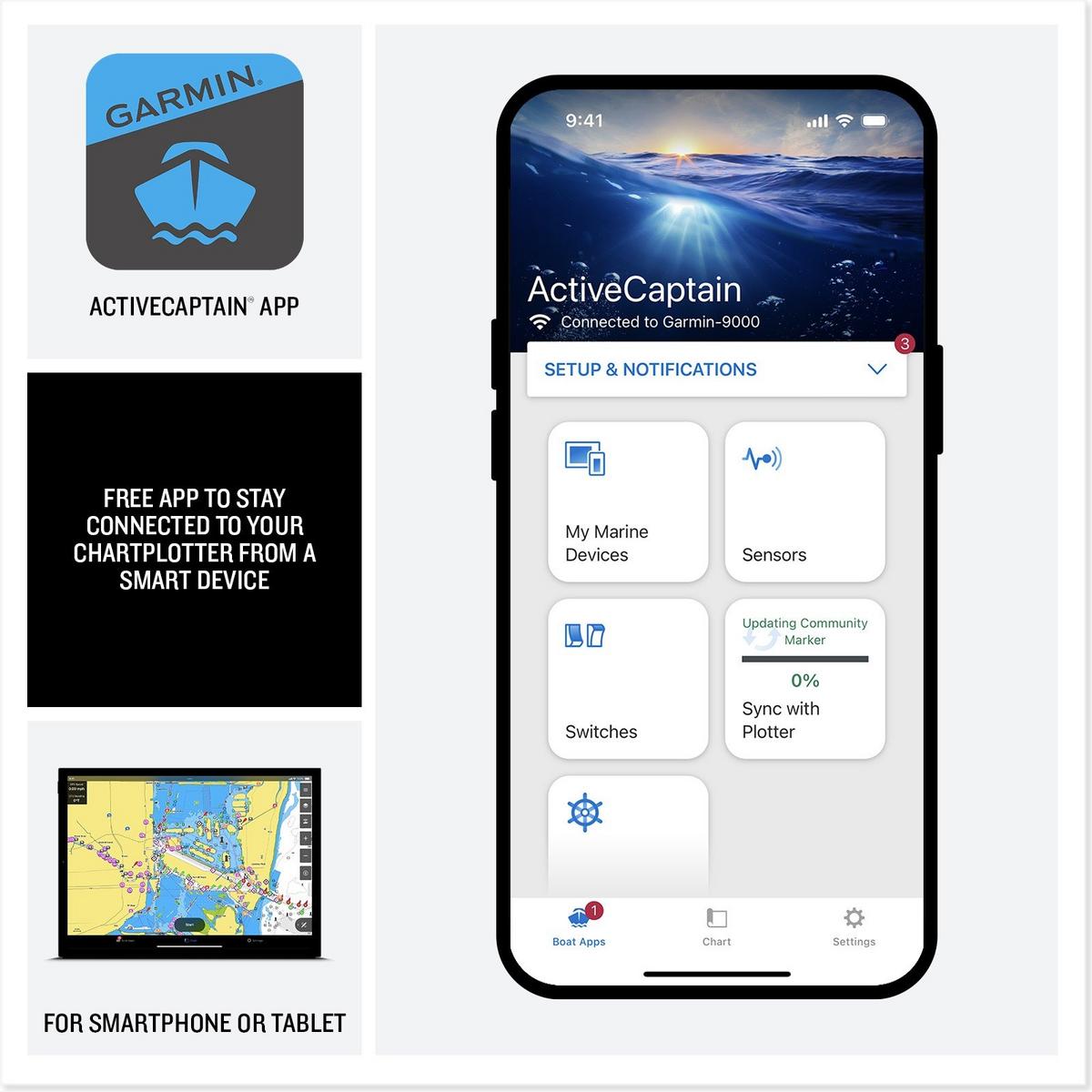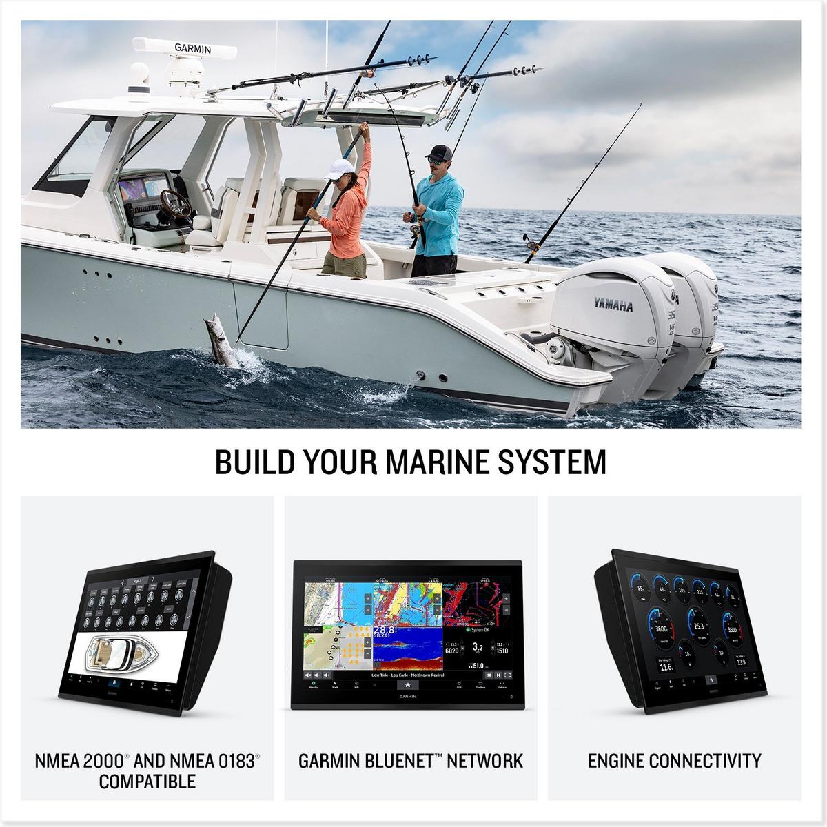 GPSMAP® 9213xsv is the integrated touchscreen chartplotter designed for captains who demand the best. Cruisers and anglers can enjoy edge-to-edge clarity with 4K resolution on a glass helm with premium design and materials. Plot your paradise faster than ever with processing power that’s up to 7 times faster than previous generations, and get 5GHz Wi-Fi® connectivity for ActiveCaptain® app updates. Our best sonar ever helps you spend less time searching and more time catching. Get a connected boating experience by linking your compatible MFDs, cameras, sonars and more on the gigabit-speed Garmin BlueNet™ network. The full suite of Garmin SailAssist™ features allow you to see wind speed, direction and other critical data at a glance. When your hands are full, use spoken commands to operate the chartplotter (compatible headset or smartwatch required; not included). Navigate on the water with preloaded Garmin Navionics+™ charts, or upgrade to premium Garmin Navionics Vision+™ charts. Garmin Navionics+ comes with Auto Guidance+™ technology, which helps you navigate and avoid land- and water-based obstacles based on chart data (for planning purposes only and does not replace safe navigation operations).