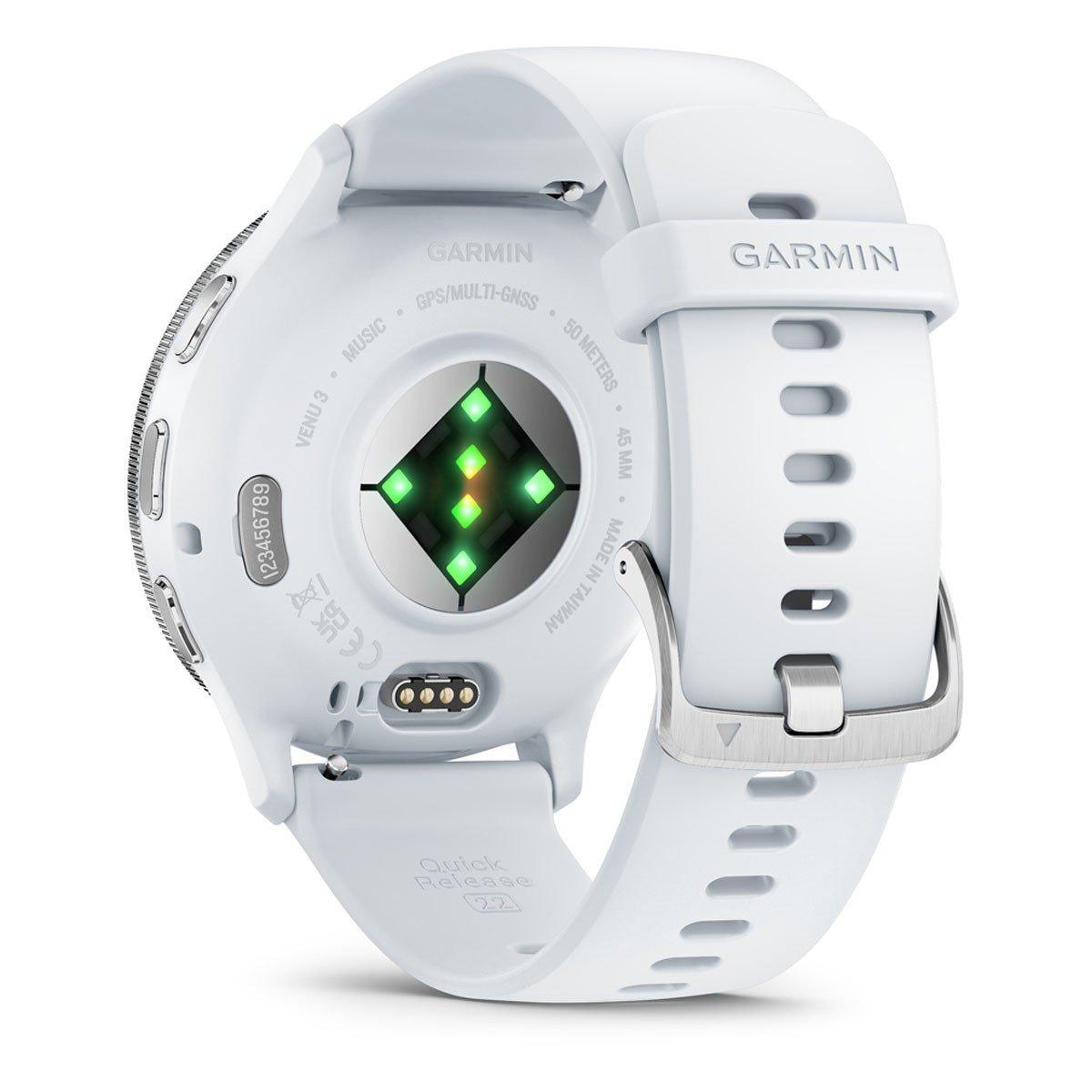 Discover your potential with the Venu 3 smartwatch, the ultimate on-wrist coach to empower your active life. With a stunning, vibrant display and an impressive battery life of up to 14 days, this GPS smartwatch is your partner in wellness. The Venu 3 provides advanced fitness and health insights to help you thrive. Track your energy throughout the day with Body Battery™, offering personalized guidance to optimize your activity and rest. Enhance your daily performance with personalized sleep insights and nap detection, along with detailed metrics like HRV status to help you understand your body's recovery. Elevate your fitness with animated workouts and over 30 built-in sports apps, including options for active wheelchair users. Plus, advanced training features will help you reach your next level. Stay connected effortlessly with a built-in speaker and microphone for calls right from your wrist when paired with your smartphone, and use your phone's voice assistant to reply to texts. Enjoy your favorite music on the go with music storage and make convenient payments with Garmin Pay™ (with a supported country and payment network).