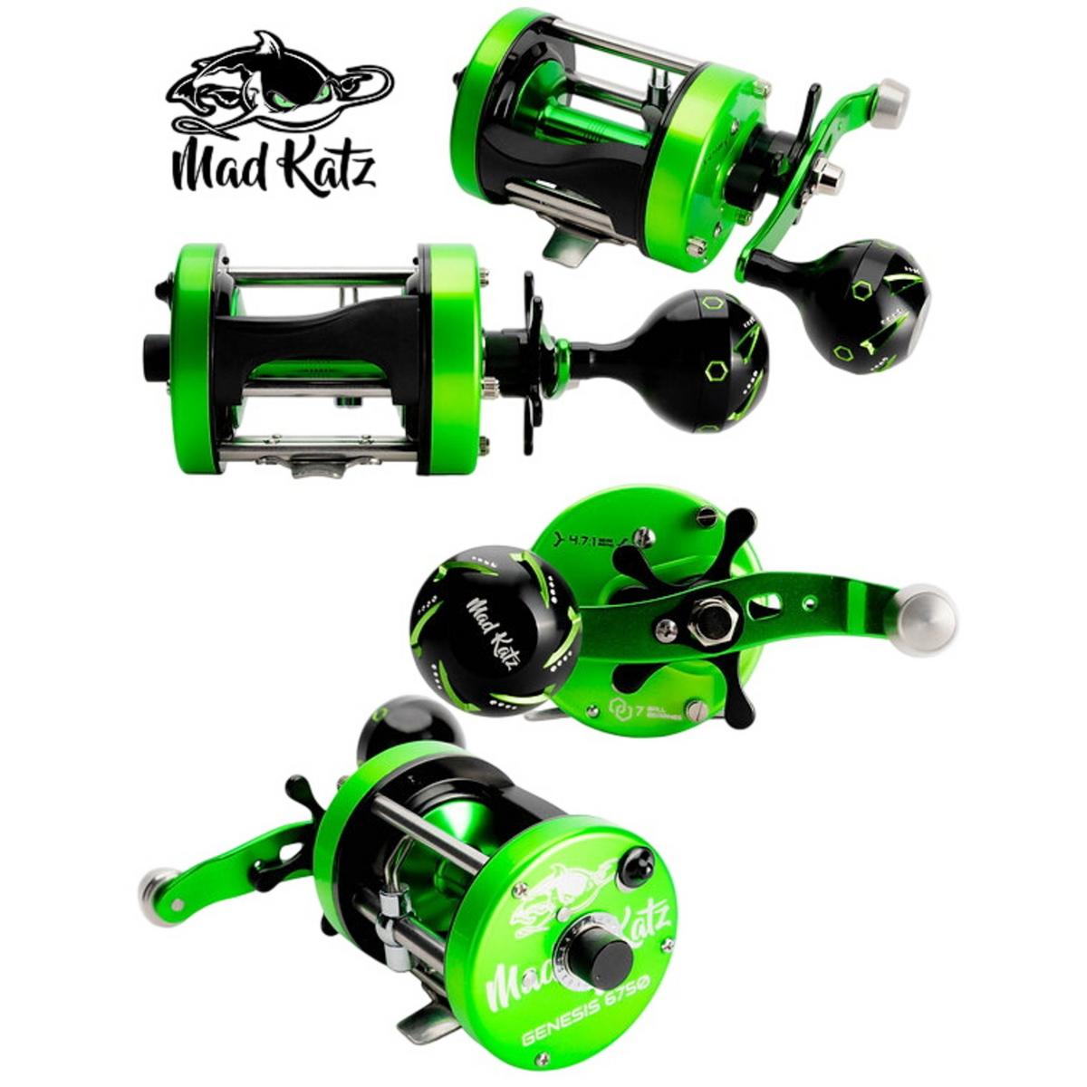 The Mad Katz Genesis 6750 Conventional Reel is a durable and reliable fishing reel designed for both saltwater and freshwater fishing. Featuring a high-quality brass frame and aluminum side plates, this reel is strong enough to handle tough fish. The stainless steel bearings ensure smooth and reliable performance, while the power handle provides a comfortable grip for long days on the water. Mad Katz 6750 is perfect for targeting a variety of game fish. Whether you're casting from shore or trolling offshore, this reel will help you land your next big catch.