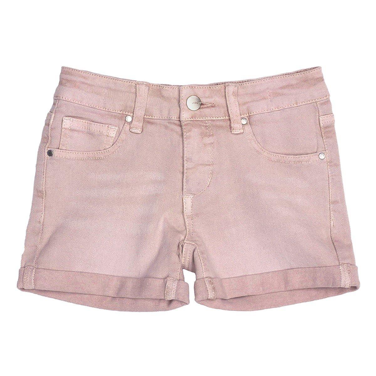Girls' Joe's Jeans The Ozzie coloured denim shorts are crafted from stretch fabric for superior comfort and durability. These mid-rise shorts feature the perfect blush pink colour, rolled hems, and a classic five-pocket design. They are enhanced with the iconic curved embroidery on the back pocket, a signature Joe's detail. An adjustable elastic waistband ensures a snug and customizable fit, making them a fun and stylish choice for any occasion.