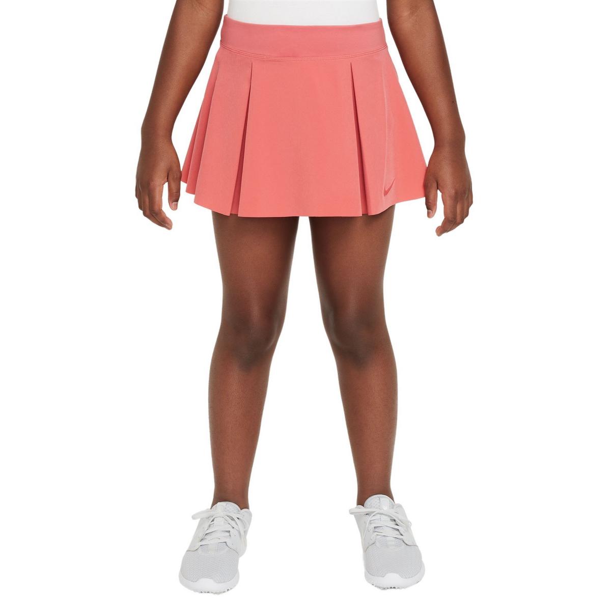 Lightweight woven fabric stretches with your body. The fabric is made with at least 75% recycled polyester fibers. Pleats give you extra room to move and let the skirt flow and flare as you bend and stretch. Nike Dri-FIT technology moves sweat away from your skin for quicker evaporation, helping you stay dry and comfortable.