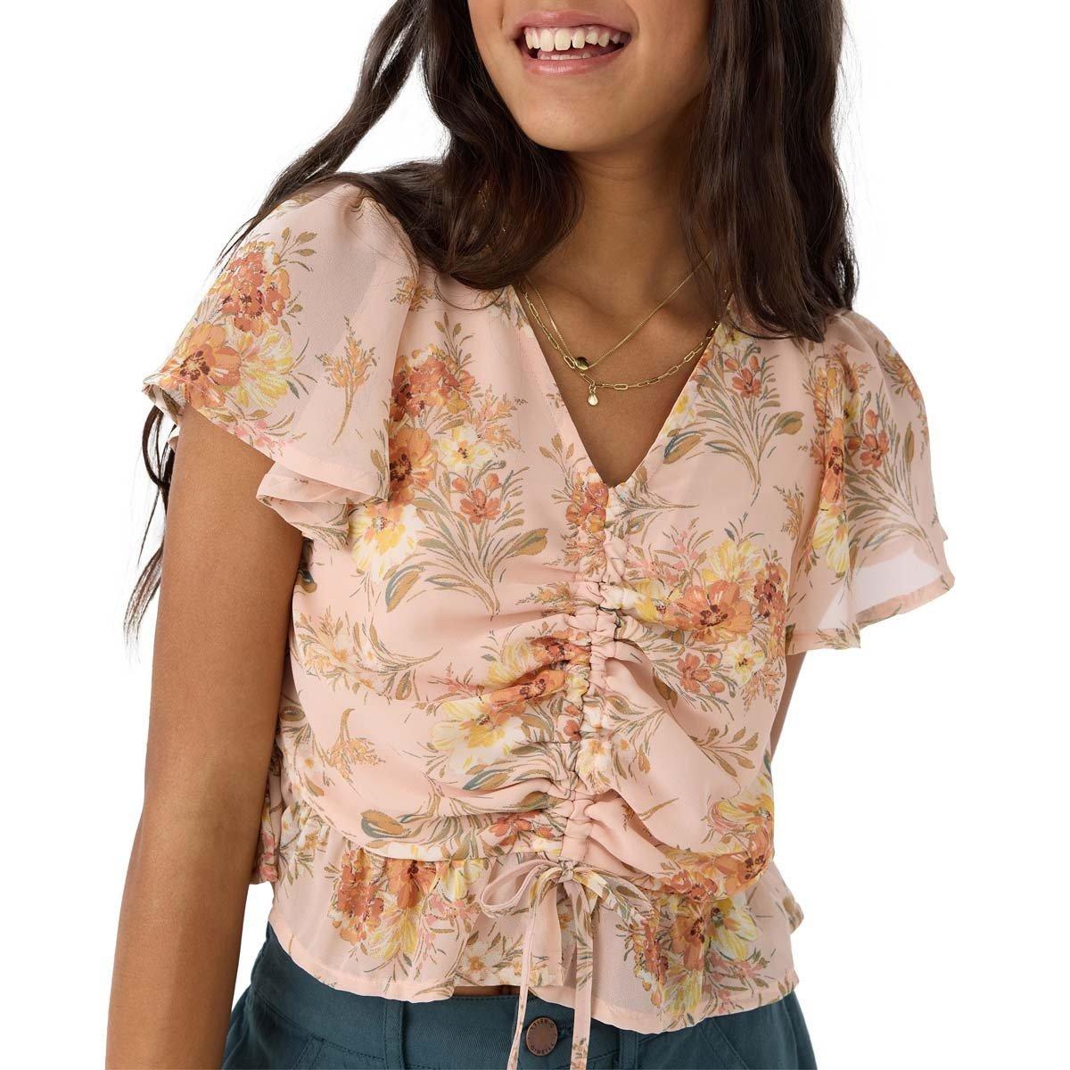 Introducing the Girls' O'Neill May V-Neck Blouse, a chic and versatile wardrobe staple designed to elevate any young girl's style. Crafted with a blend of soft, breathable fabrics, this blouse offers exceptional comfort and durability, perfect for everyday wear or special occasions. The blouse features a flattering V-neckline that adds a touch of sophistication to any outfit. Its loose, flowy fit ensures ease of movement, making it ideal for active girls who love to look stylish while staying comfortable. The delicate floral pattern adds a playful and feminine touch, while the subtle color palette makes it easy to pair with a variety of bottoms, from jeans to skirts. Designed with attention to detail, the Girls' O'Neill May V-Neck Blouse includes charming accents such as gentle ruffles on the sleeves and a slightly curved hemline for an elegant silhouette. Whether she’s heading to school, a family gathering, or a weekend outing, this blouse is sure to become a favorite go-to piece in her closet. Easy to care for and maintain, the blouse is machine washable, ensuring it remains a practical choice for both parents and kids. Embrace effortless style and comfort with the Girls' O'Neill May V-Neck Blouse – where fashion meets functionality.