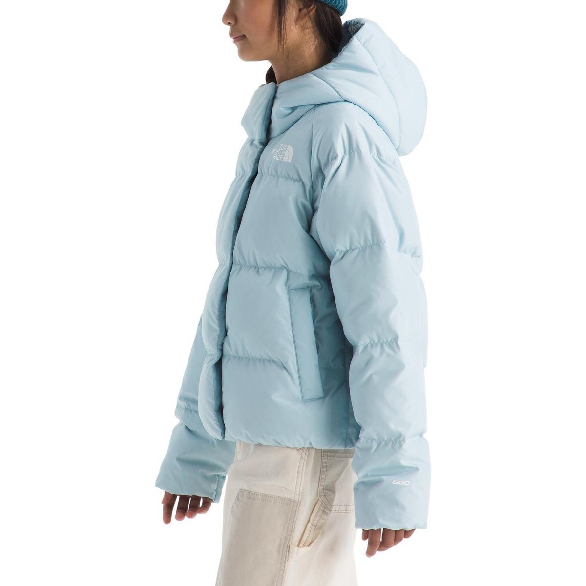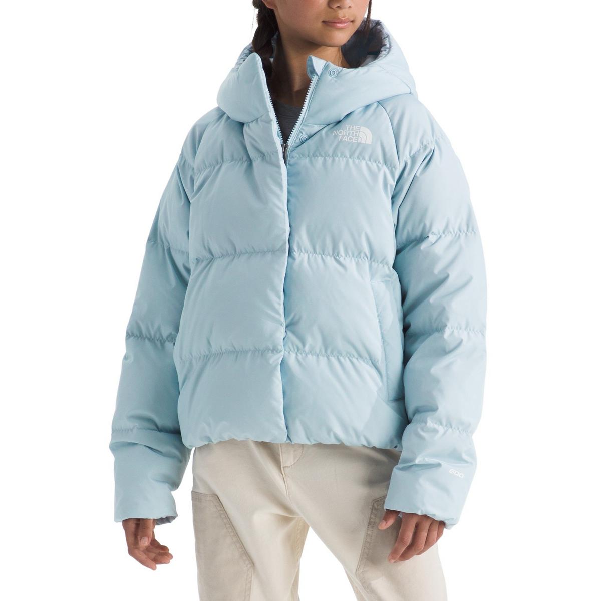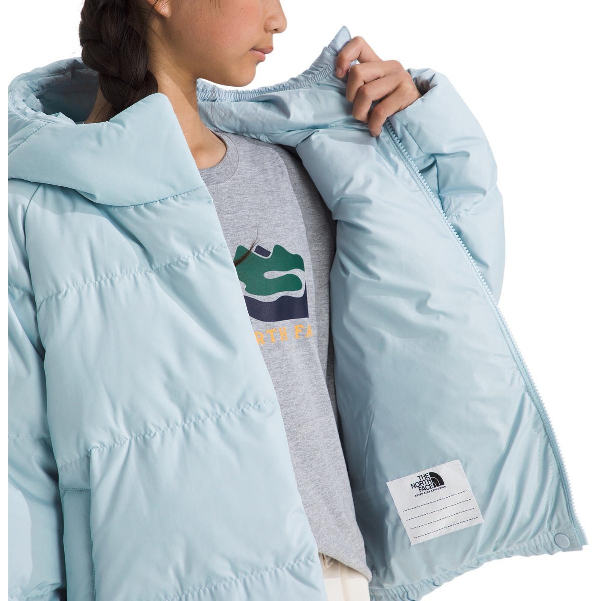 When the cold gets colder, the Girls' The North Face North Down Hooded Puffer Jacket provides the warmth and mobility needed to keep moving. This jacket offers reliable insulation with 600-fill, 100% recycled down in the body and a water-repellent finish that helps water bead on the surface. The design incorporates raglan sleeves for easy movement, ensuring young athletes can stay warm without slowing down. Built with a commitment to sustainability, both the body fabric and lining are made with recycled polyester, while the hood adds warmth with Heatseeker™ Eco synthetic insulation.