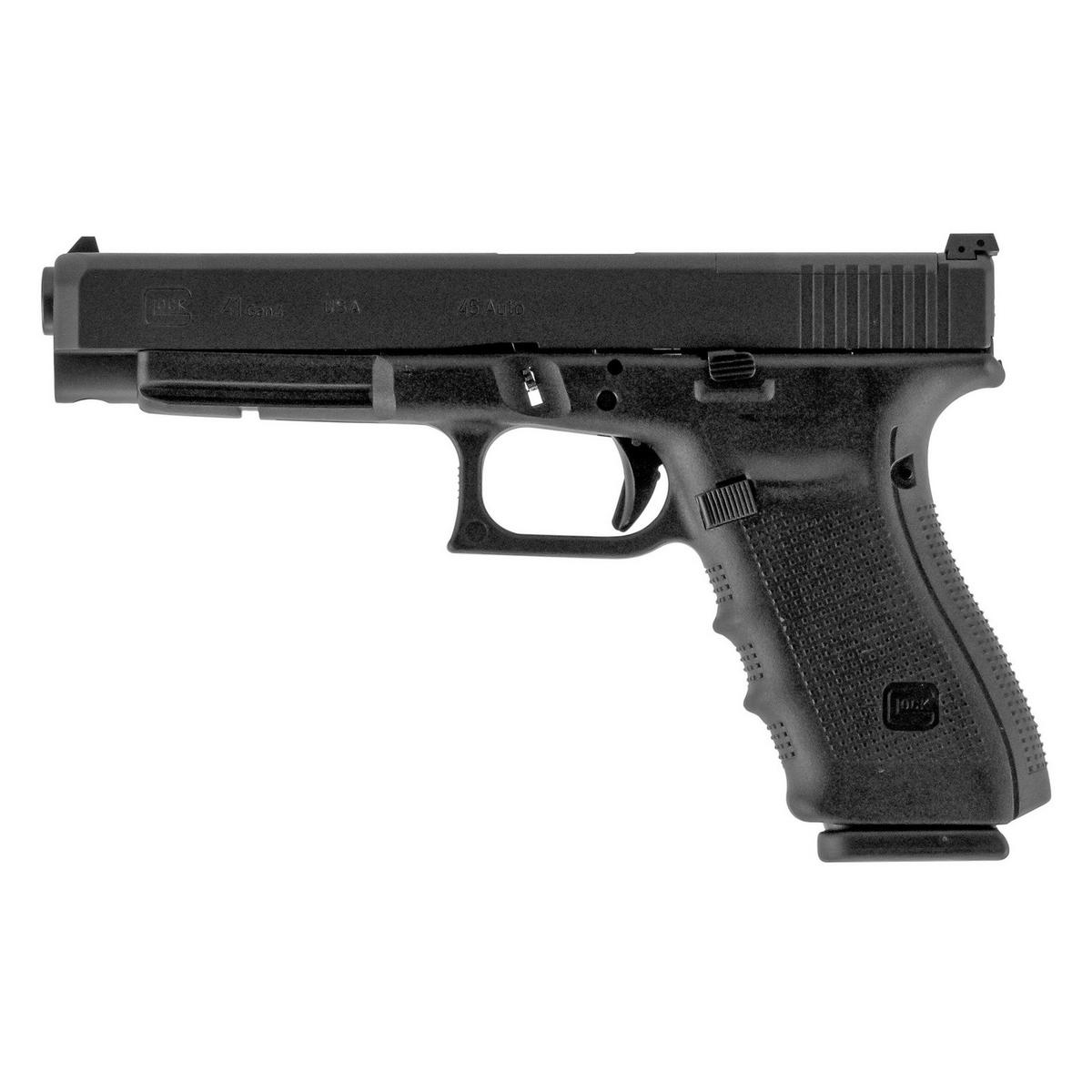 The GLOCK 41 Gen4 is a 45 Auto caliber pistol designed to maximize sight radius while achieving perfect weight distribution and balance. The longer barrel and slide help to reduce muzzle flip and felt recoil whereas the MOS Configuration makes it easy to mount a miniature reflex sight on the pistol’s slide without the need for a new slide or separate mounting system. The Modular Back Strap system makes it possible to instantly customize its grip to accommodate any hand size. The reversible magazine catch makes it ideal for left and right-handed shooters.