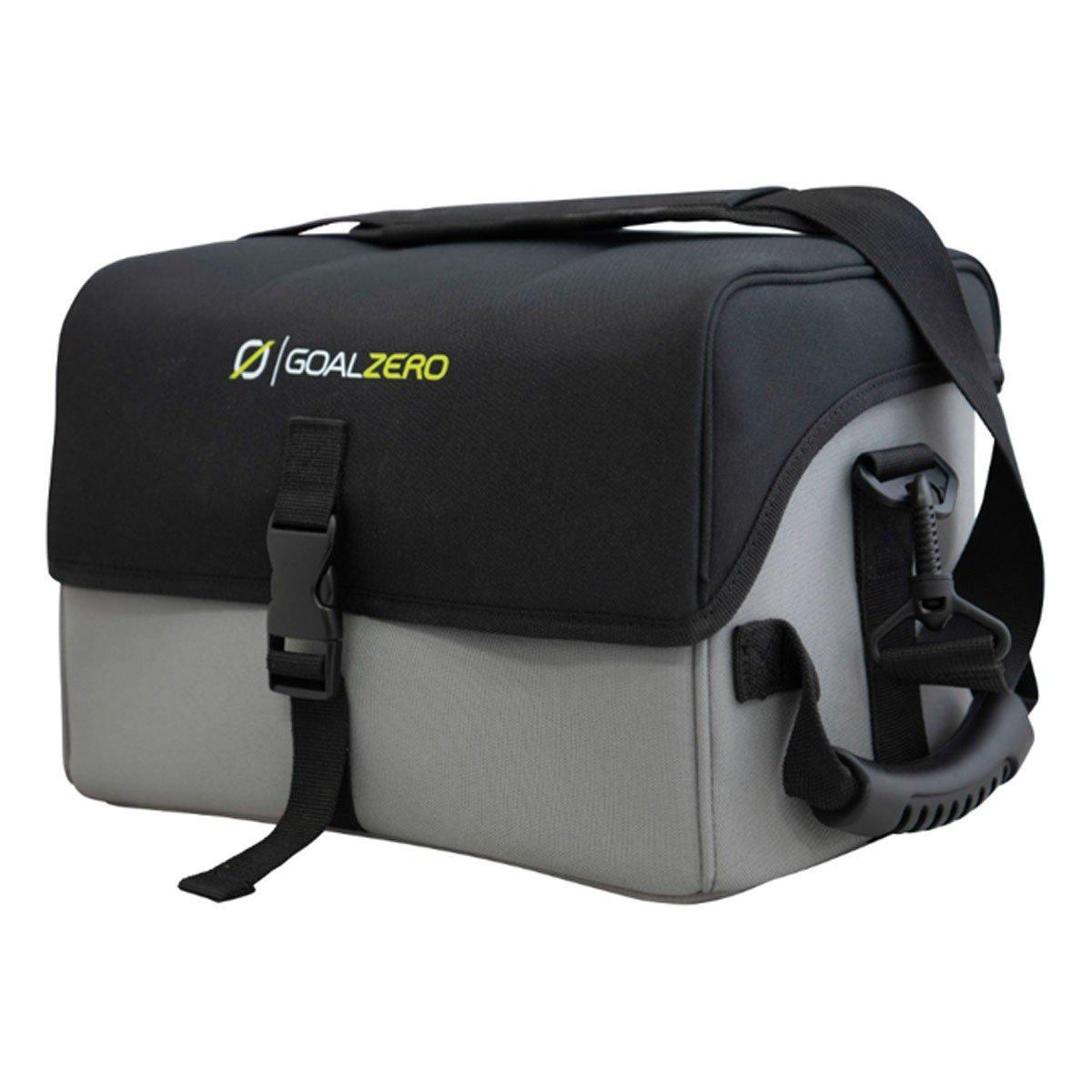 This convenient case protects your Yeti 300 power station during transportation and makes it easy to carry with you on all your adventures. It includes a shoulder strap, a secure buckle, and sturdy, easy-grip handles on each side. There are also non-slip rubber pads on the bottom of the case.