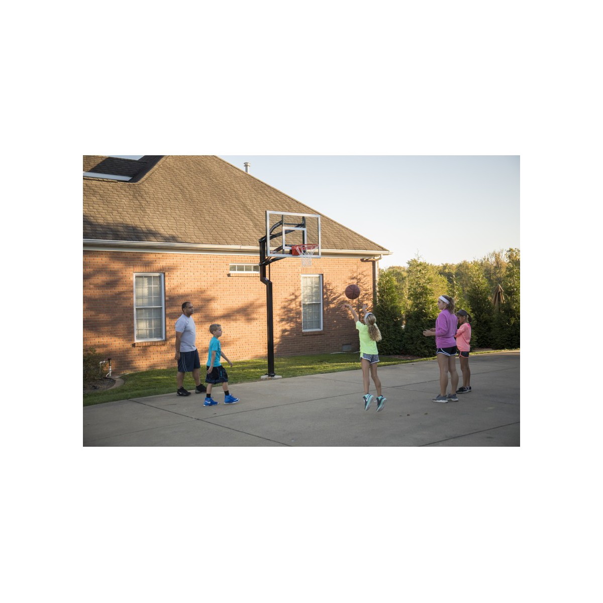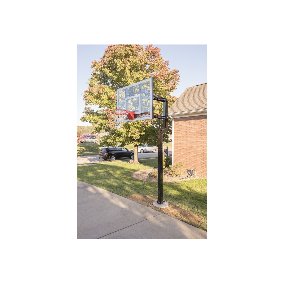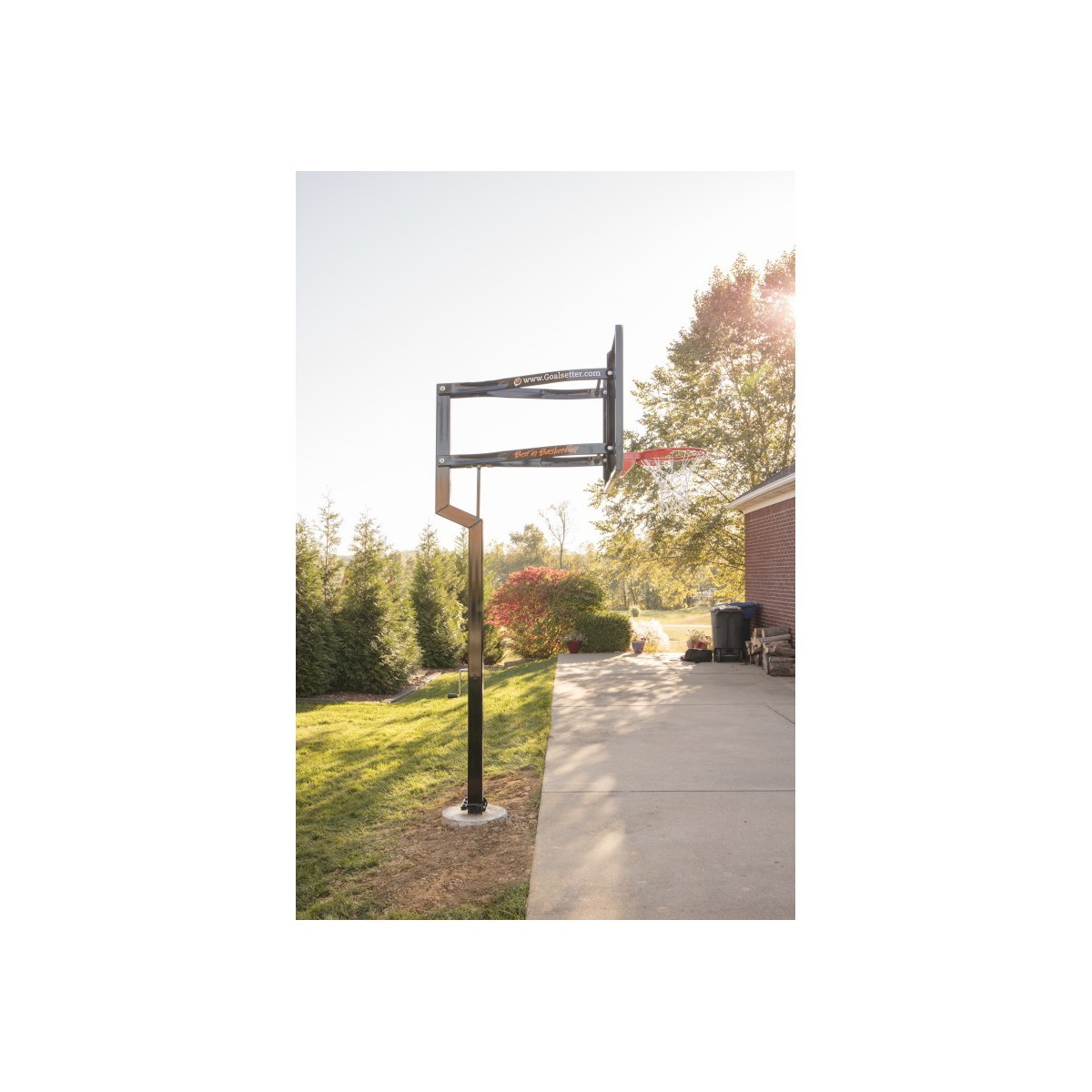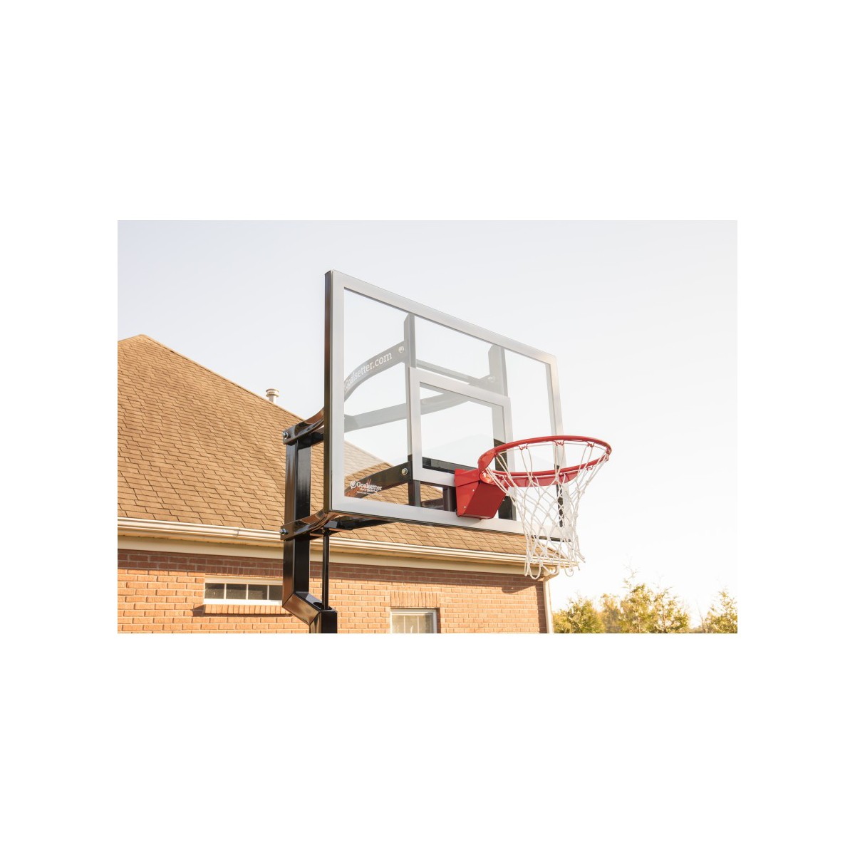 The Goalsetter Contender Basketball System is an American-made basketball hoop that's ideal for home and recreational use. Featuring a full-tempered glass backboard and a 1.5-inch structural steel H-frame, the Goalsetter Contender in-ground basketball system provides maximum stability and consistent ball response for competitive play. Designed with safety in mind, the Goalsetter Contender in-ground basketball hoop features a 2.5-inch offset from the pole and rounded corners and edges. Like all Goalsetter basketball hoops, the Contender is easy to adjust with the patented internal compression height adjustment system, making the rim infinitely adjustable from 6 feet to 10 feet. Add fun to your driveway this summer with the Goalsetter Contender Basketball System.