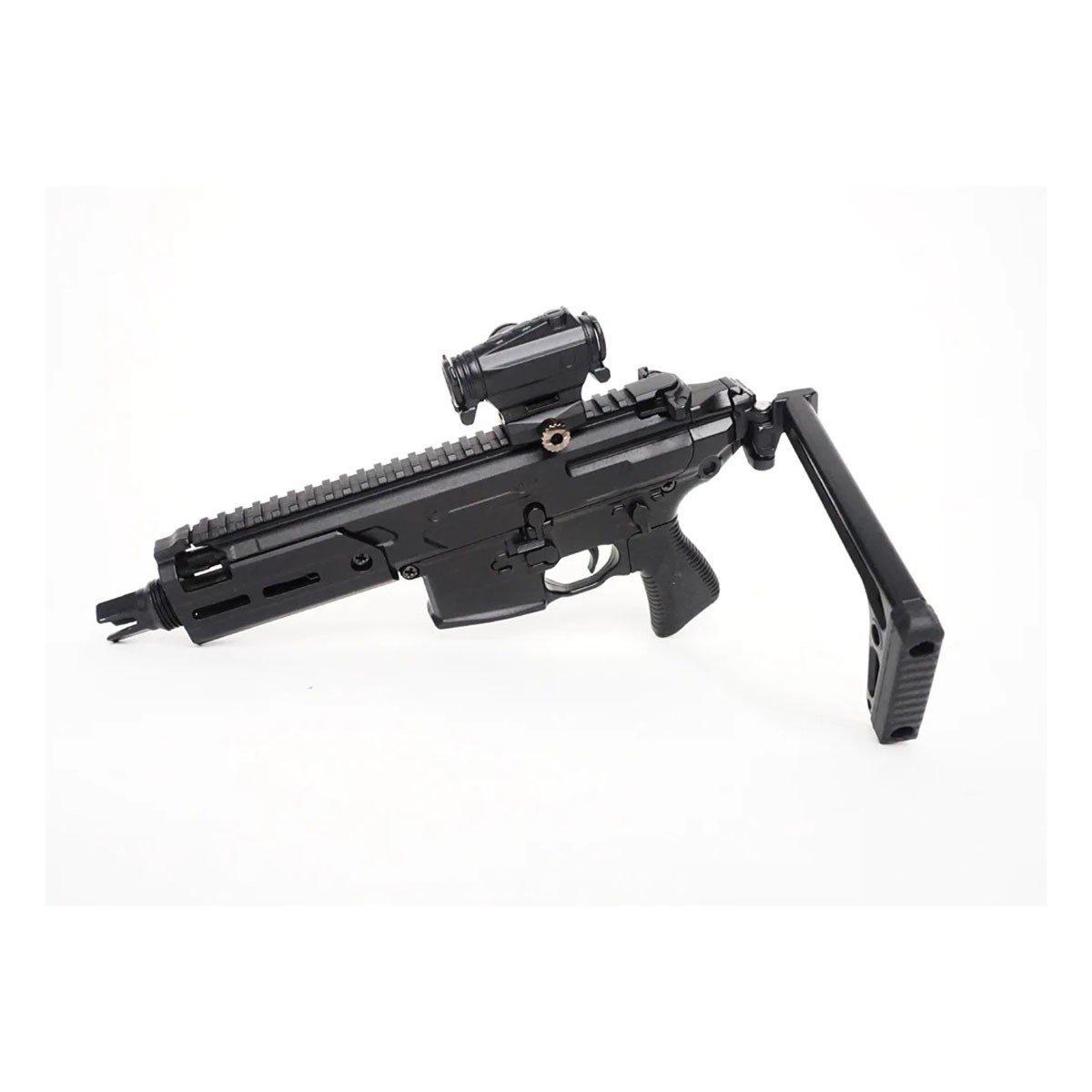 It's wild out there and the Rattler™ can't be stopped. Sarge is proud to release the long awaited for miniature SIG MCX® in all it's beauty. This is the first GoatGun model to have the ability to chamber and eject dummy rounds. 1:3 scale version of the SIG MCX® done in all die cast metal. Easily twist off the suppressor to reveal the flash hider. Scope tightens onto railing at the position you want. The folding stock functions and is quickly addicting.