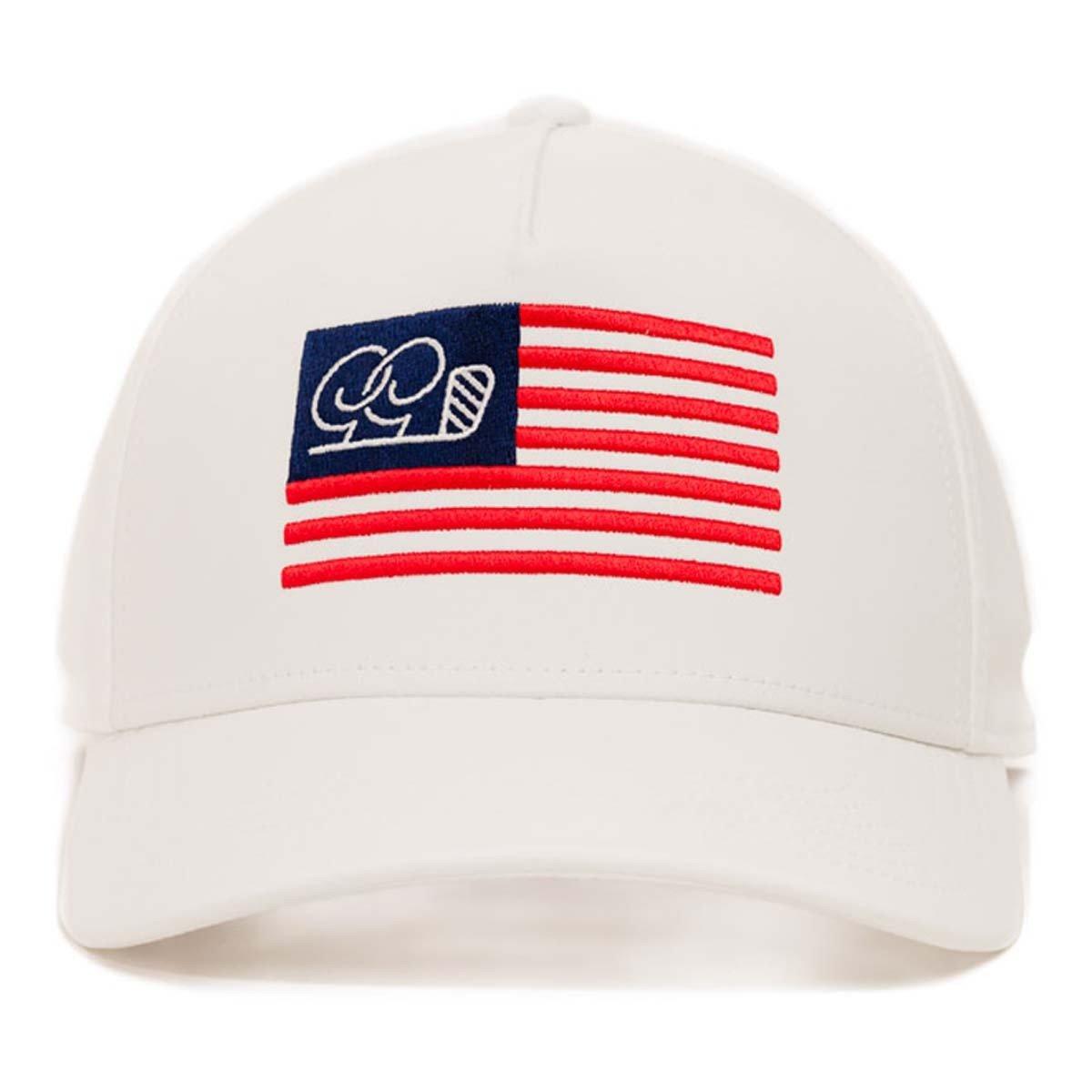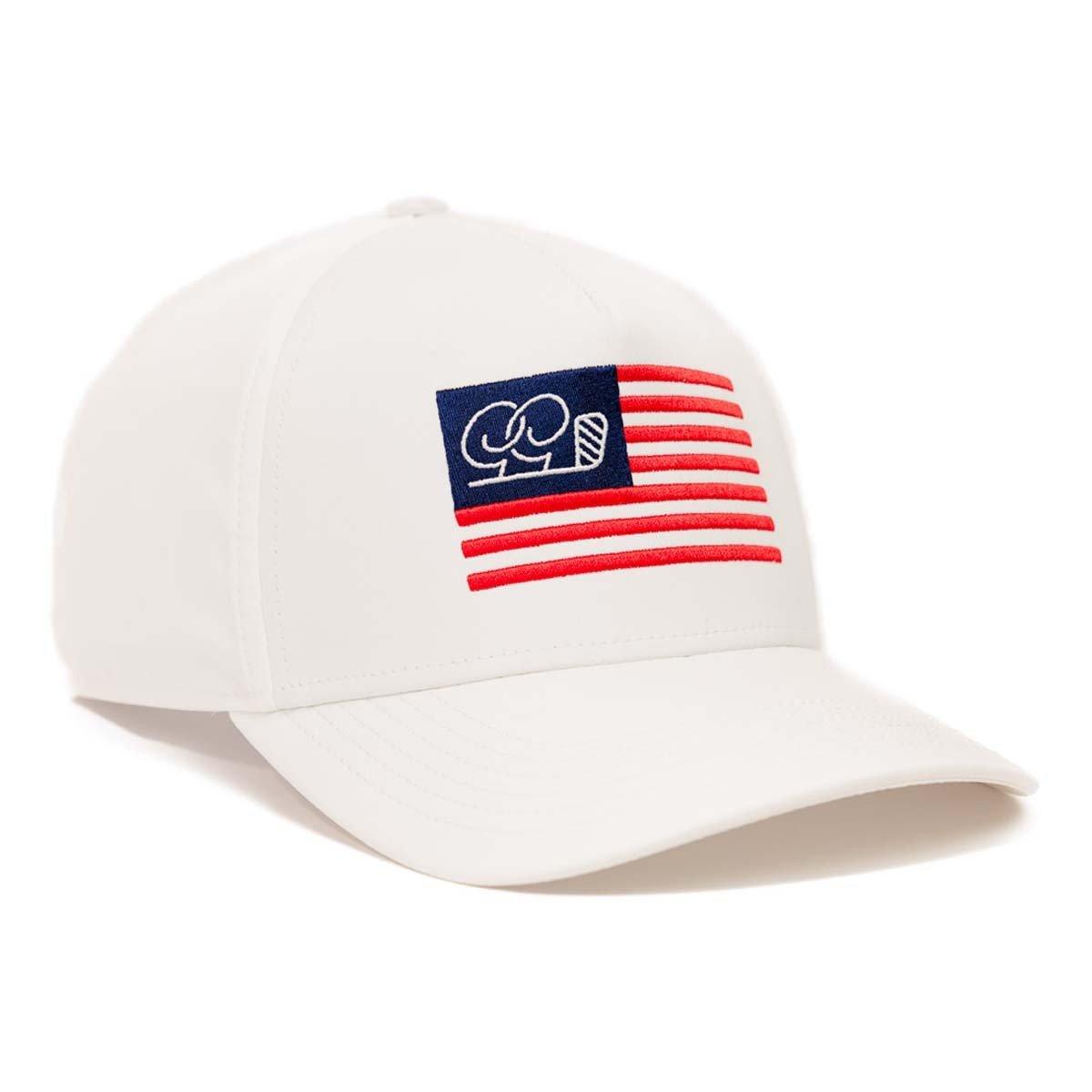 The Good Good Golf Good Flag Hat features a stylish flag design with a comfortable, adjustable fit. Perfect for sun protection, it combines performance and flair for a bold, sporty look on or off the course.