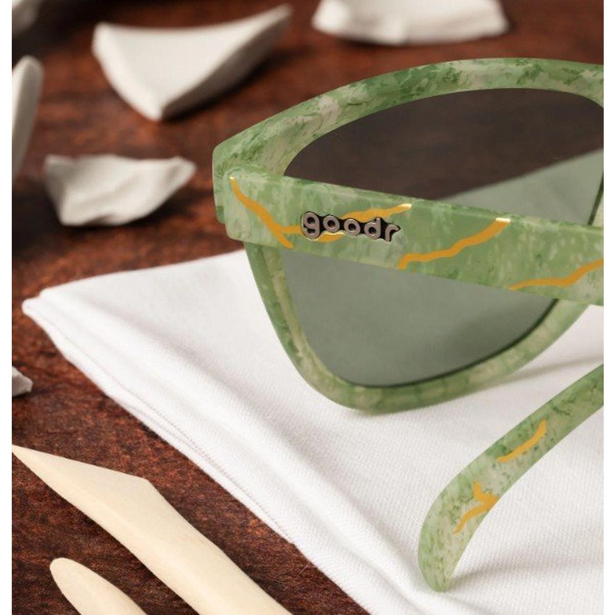These ethereal marbled green OGs feature hints of gold & green non-reflective lenses. Inspired by kintsugi, a Japanese art form where broken objects are repaired & transformed, representing resilience, character, and beauty in imperfection.