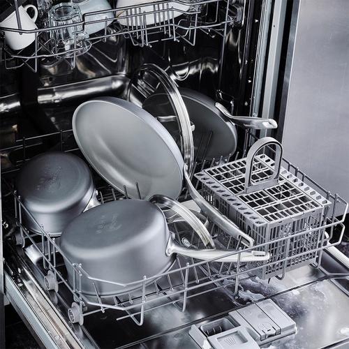 Designed to be your everyday go-to, this 10-piece set simmers soups, cooks fluffy grains, and turns out picture-perfect fish. The ultra-tough hard anodized aluminum bodies won’t warp or wobble, no matter how many meals they turn out.