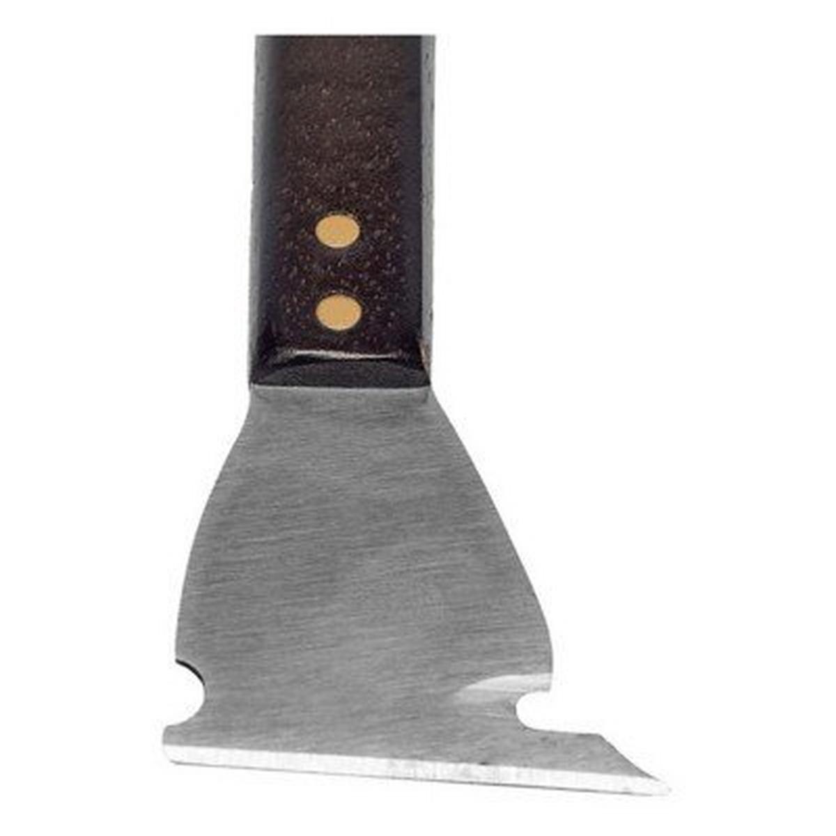 Handy little tool to help clean those hard to reach places on your GrillGrates. Perfect for maintaining the interlocking joints where carbon tends to accumulate. Also works really well at keeping the holes in the GrillGrates open. For occasional use on the tops of the rails for removal of those stubborn little bits a grill brush won't remove. Works really well for detailing under your GrillGrates on places such as the fire box, flame tents, and drip pans. 11" wooden handle with 2" stainless steel scraper. Leather hanging strap.