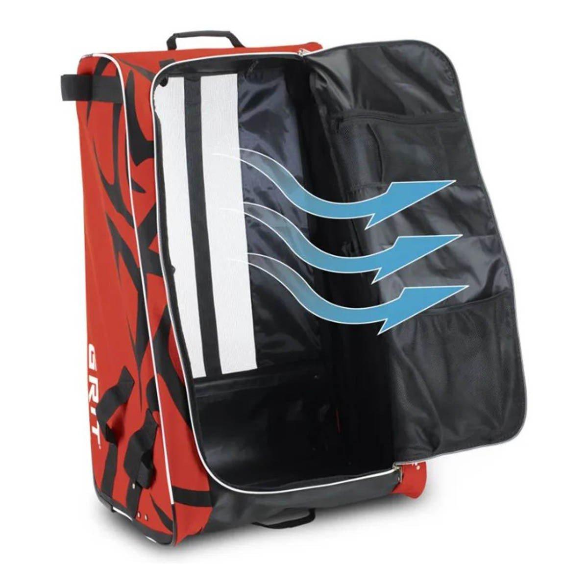 Transport your hockey equipment with ease this year with the GRIT HTFX Tower Hockey Bag. This GRIT HTFX Tower Hockey Bag is lightweight, flexible, durable and ready for anything the season throws its way. This hockey bag has a foot carpet for storing your skates and a composite frame so it can be stored beneath the dressing room bench and also will fit in smaller cars. The mesh door accessory pockets are great for improving ventilation along with the equipment shelf with airflow features. Use the conveniant side panel shoulder strap for easy carrying and transportation from home to the rink. Shop the GRIT HTFX at SCHEELS today!