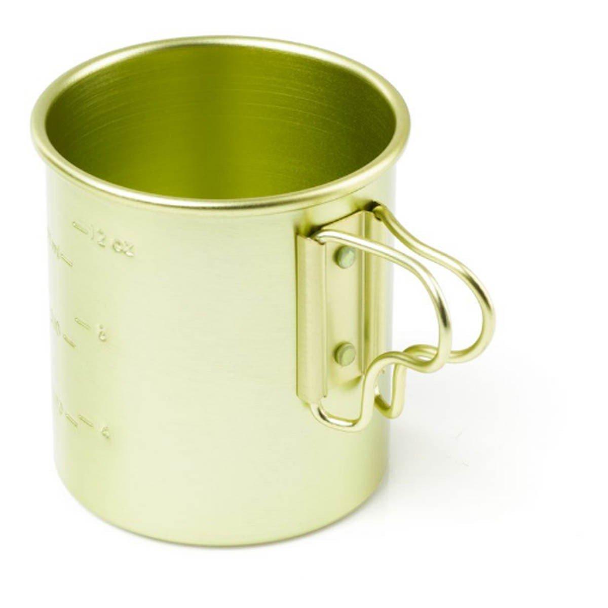 Hold your favorite beverage or measure out the ingredients for your next meal. The bright and lightweight 14 fl oz Bugaboo Cup belies strength and reliability. This ultra-lightweight camping and hiking cup made of high-grade aluminum features folding handles and stamped-in graduations.