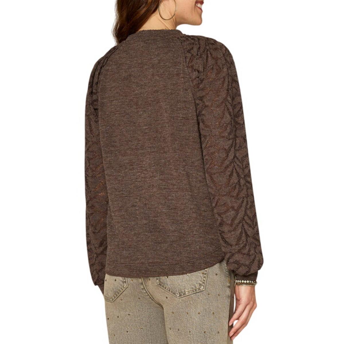 Women's Democracy Half Placket Mixed Media Knit Long Sleeve Notch Neck Shirt