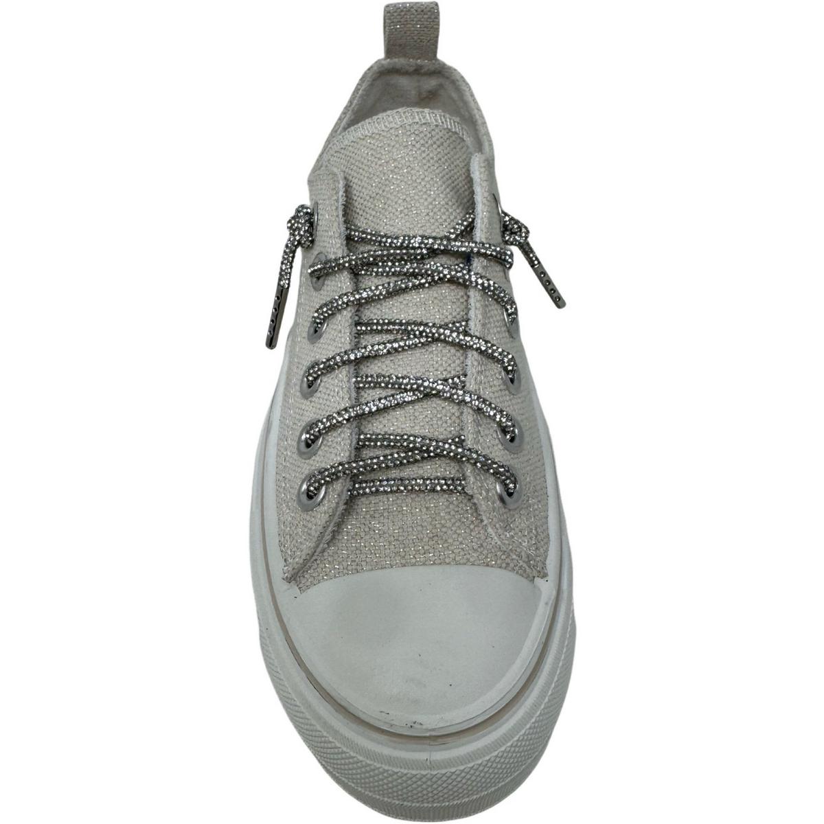 Harmon Sparkle Women's Very G Sneaker. An update to our best glitter laced sneaker. This slip on sneaker has a double platform, marshmallow soft footbed, muted sparkle material with our classic glittler laces.
