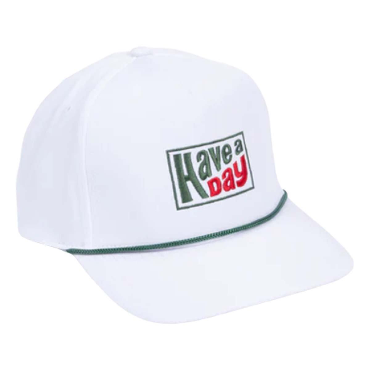 {"reviews":[],"offset":0,"limit":10,"total":0}"Full Description:\nLet's have a day folks, why not us? This BRAND NEW ROPE HAT STYLE is a Performance poly fabric with a 5 panel crown for reduced height on the forehead.\n\nFeatures:\n\u003cul>\n\u003cli>5 panel "retro fit"\u003c/li>\n\u003cli>Green rope along base of front panel\u003c/li>\n\u003cli>Adjustable Plastic Snap Closure\u003c/li>\n\u003c/ul>\n\n"